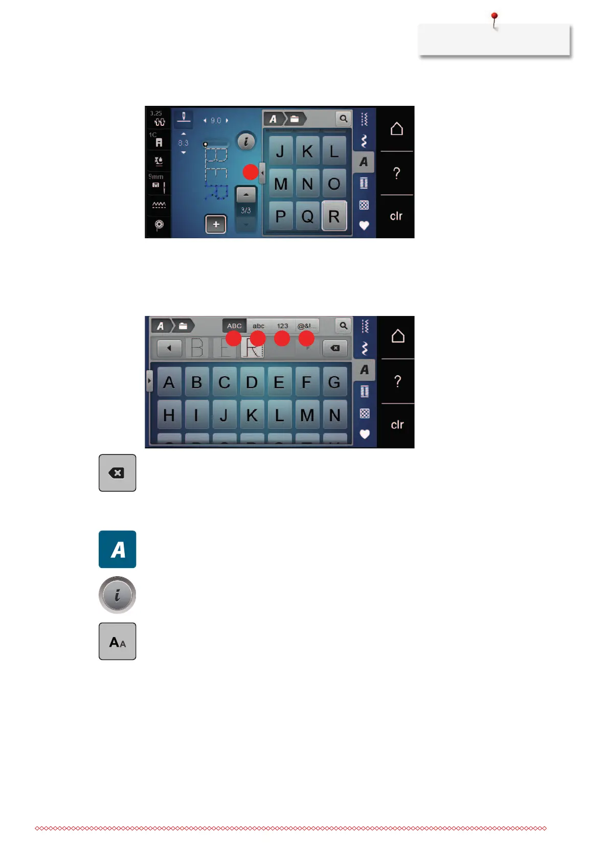 > Touch the icon «Display alphabets» (1) to open an extended enter mode.