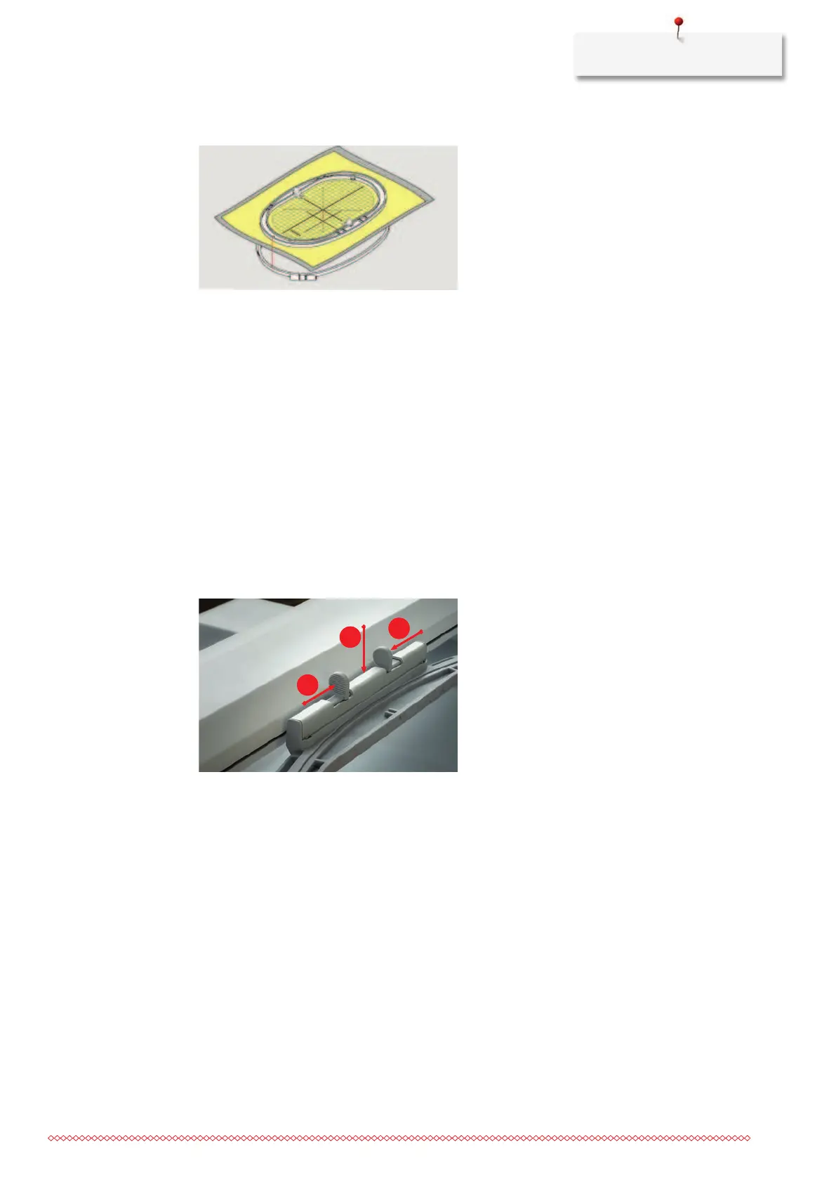> Position the embroidery hoop (2) above the bracket of the embroidery arm.
