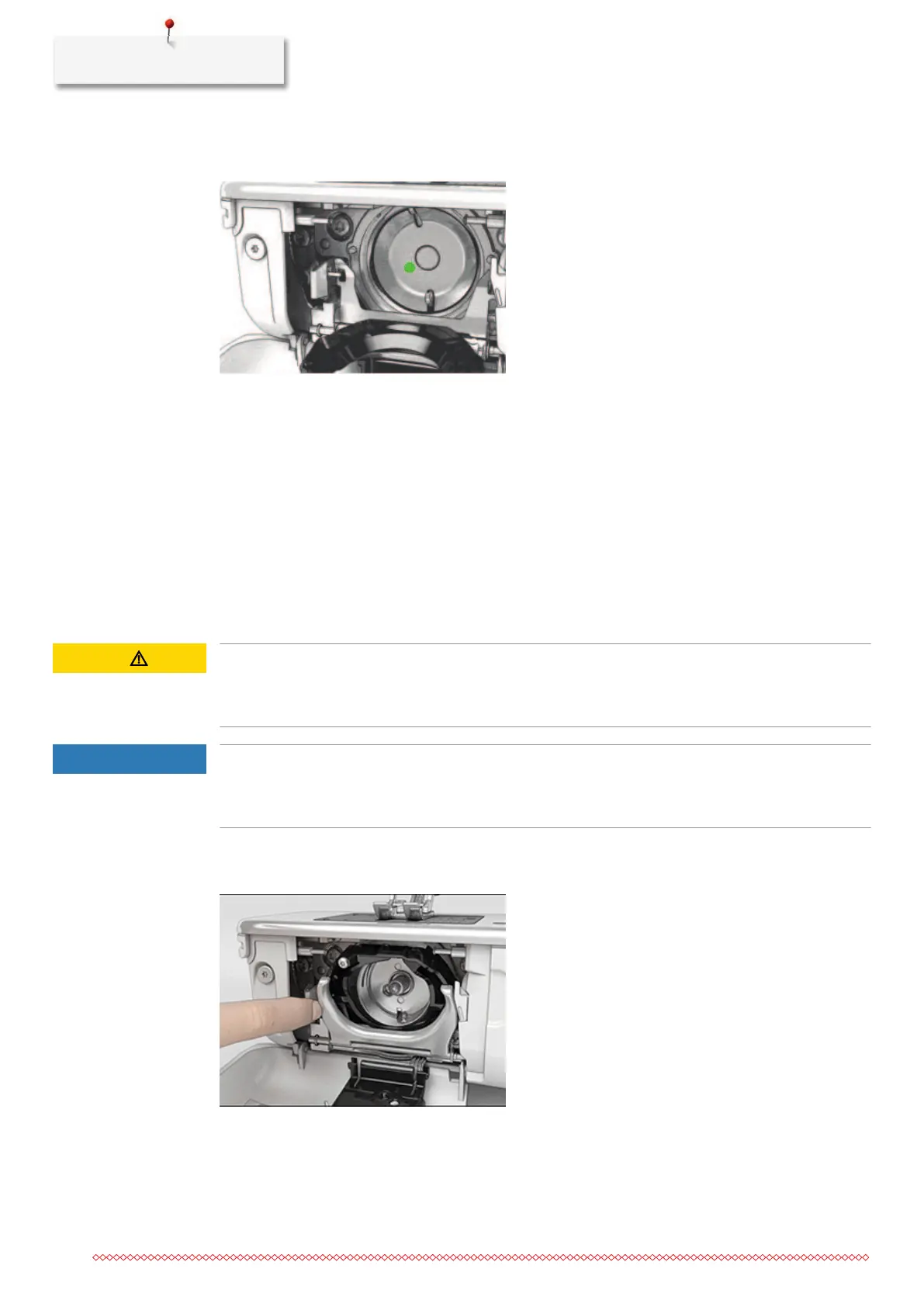 > Clean the hook race area with the brush; never use a sharp instrument.