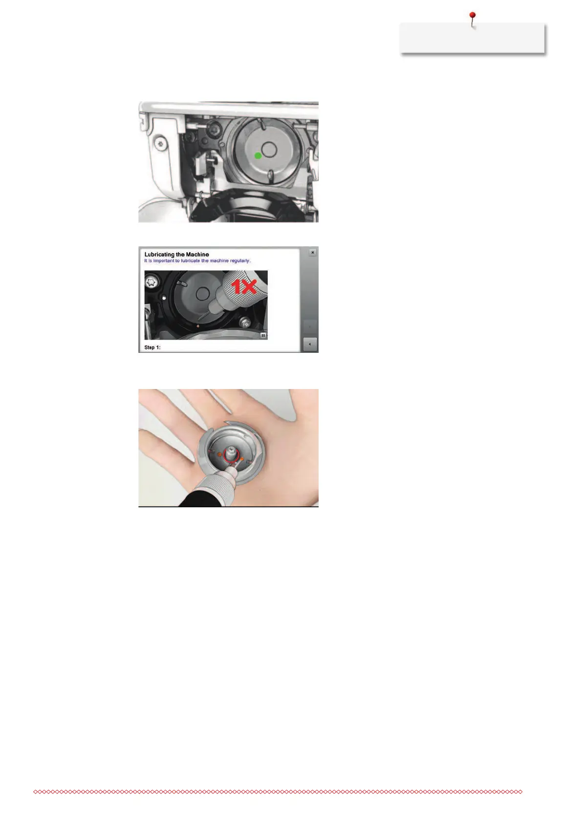 > Give one drop of BERNINA oil down in the hook race.