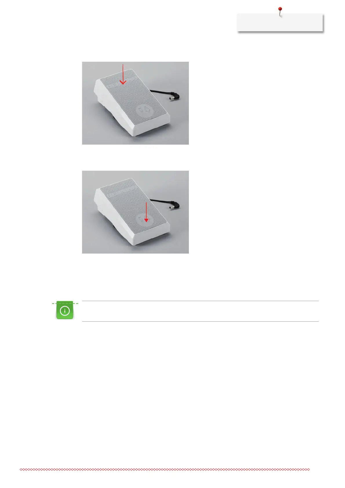 > Sink the heel back on the foot control to raise/lower the needle.