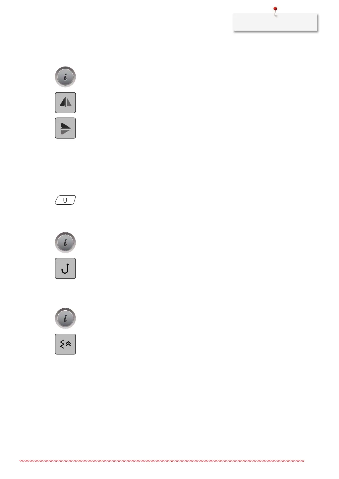 – The machine keeps sewing in reverse until the icon «Permanent reverse sewing» is touched again.