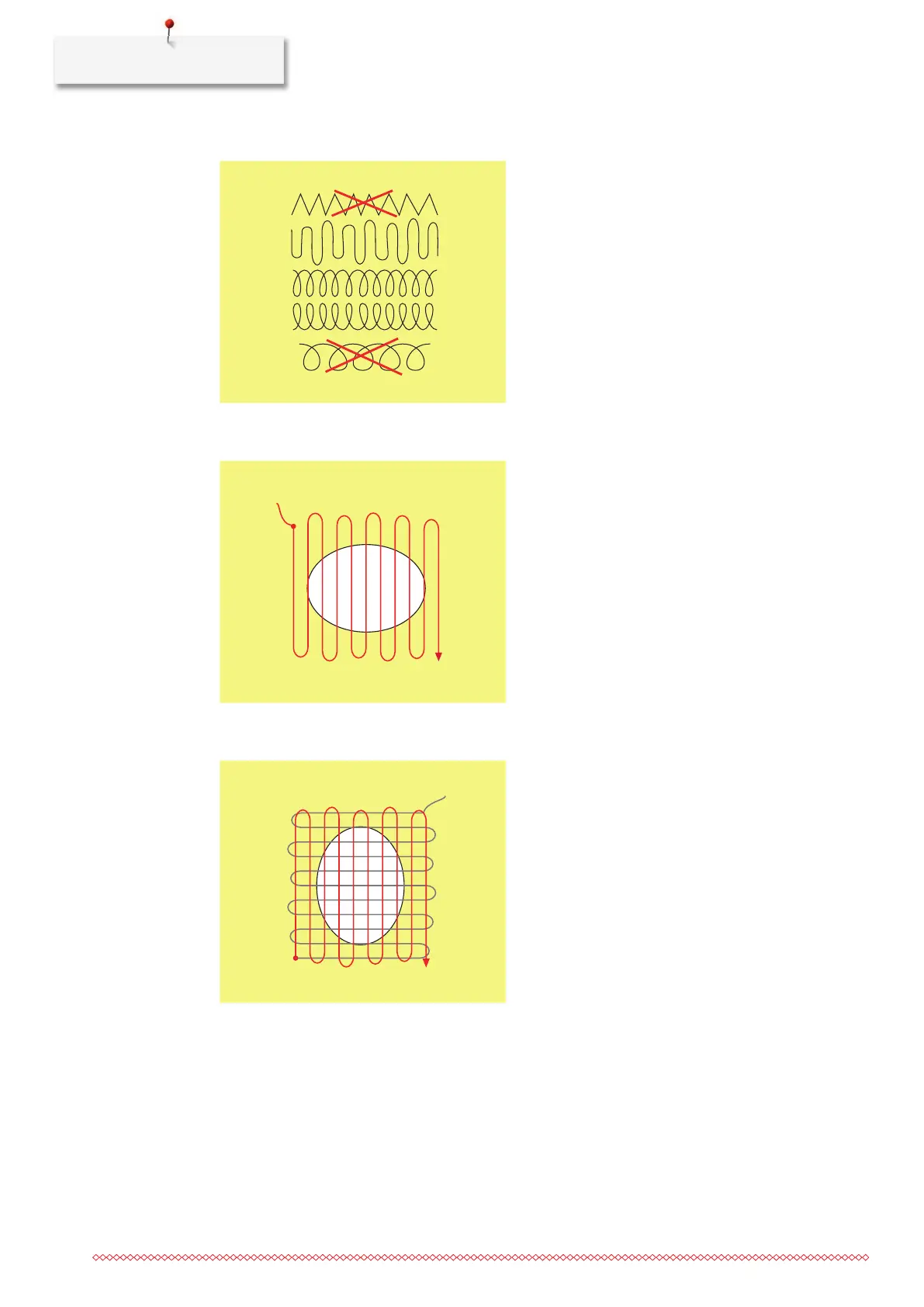 > Work the rows in irregular lengths so that the thread is better spread over the fabric.