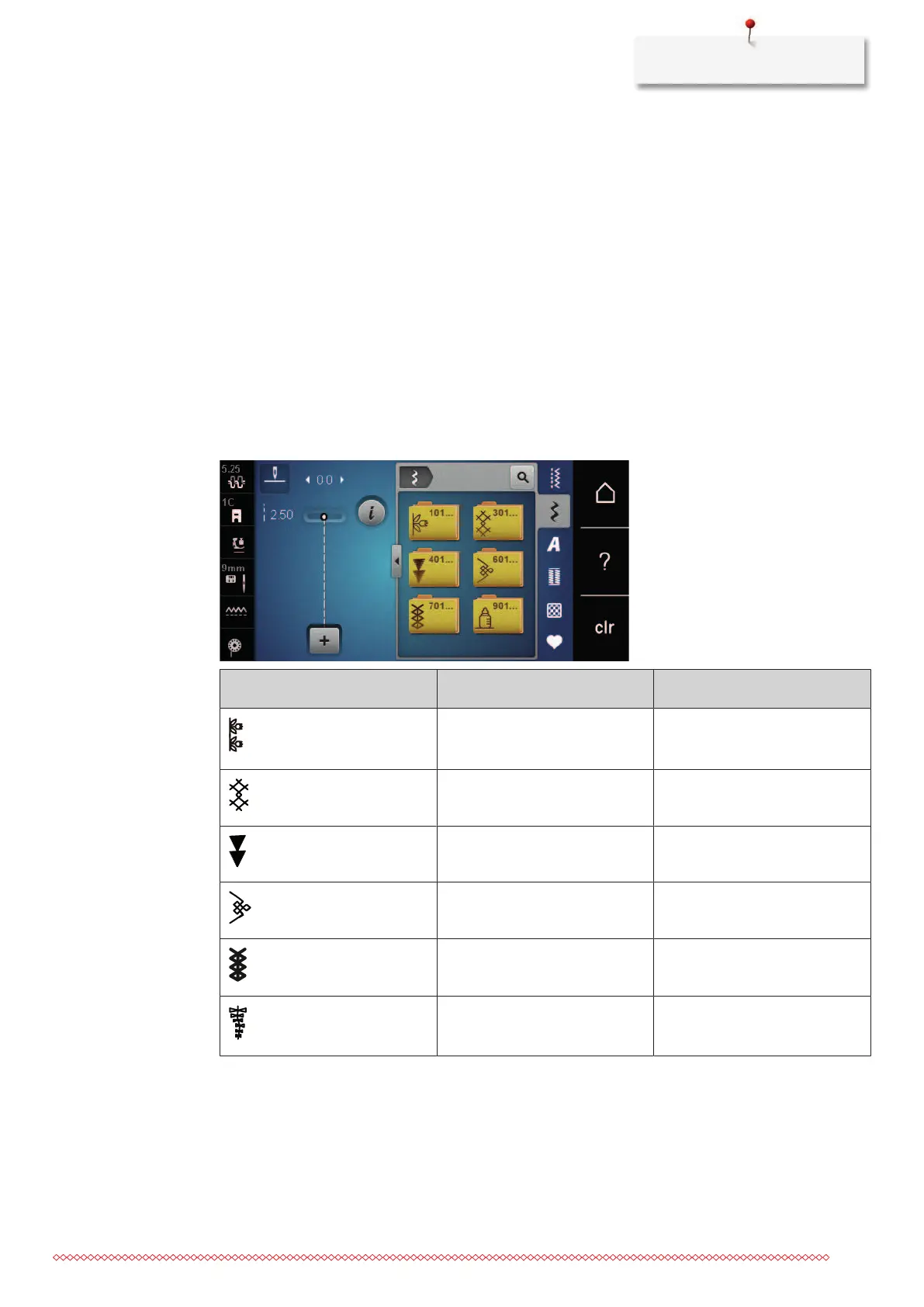 • Decorative stitches which are programmed with triple straight stitches or with a few satin stitches are