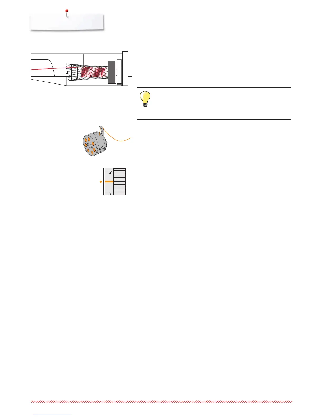 the vertical spool pin and the guide eyelet for metallic and silk thread