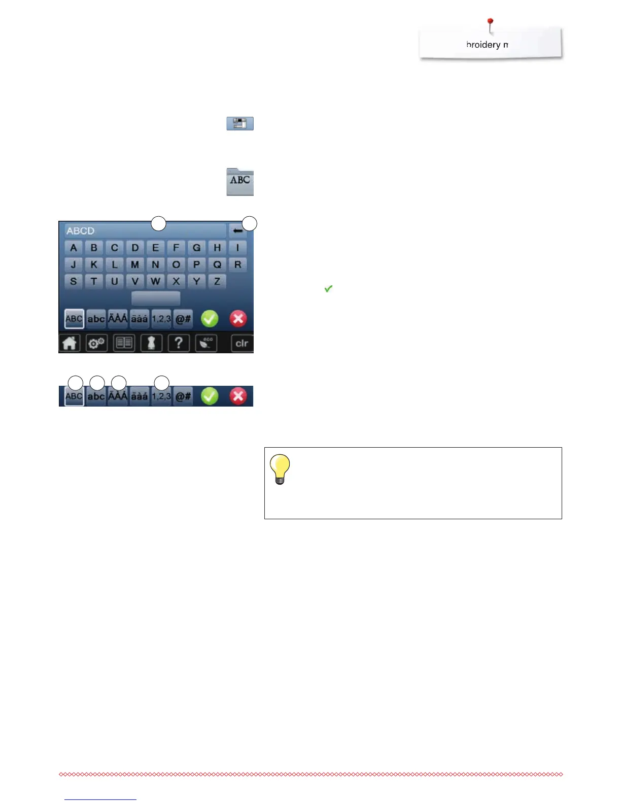 Various embroidery motifs from the «Alphabets», «Motifs» and «My Designs»