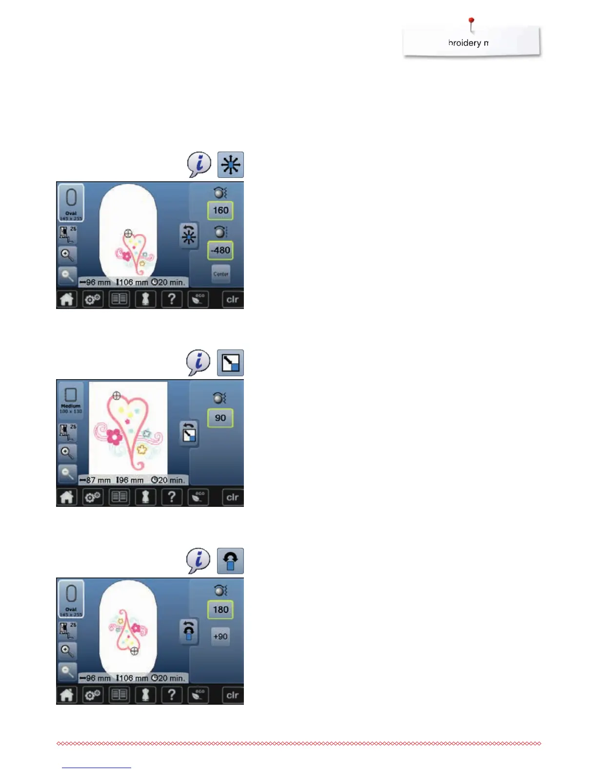 the motif is repositioned to the center of the hoop