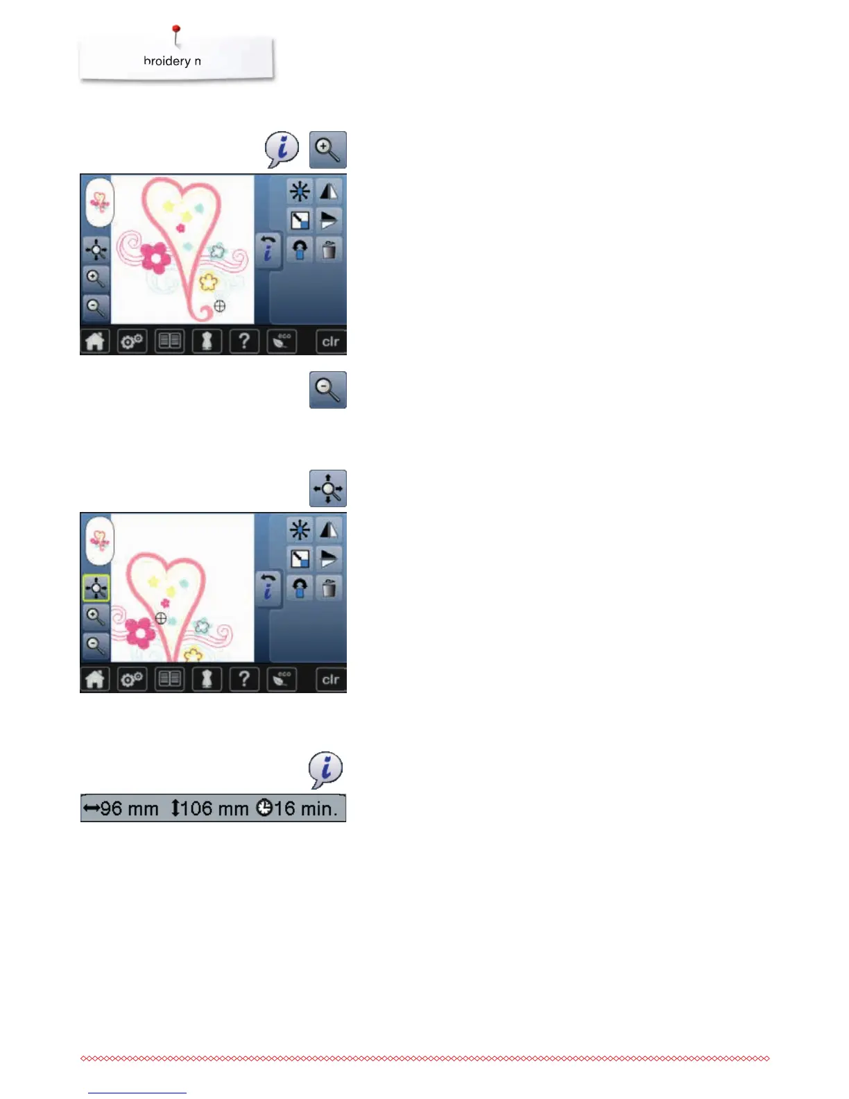 Width and height of the embroidery motif is displayed in millimeters (mm). The
