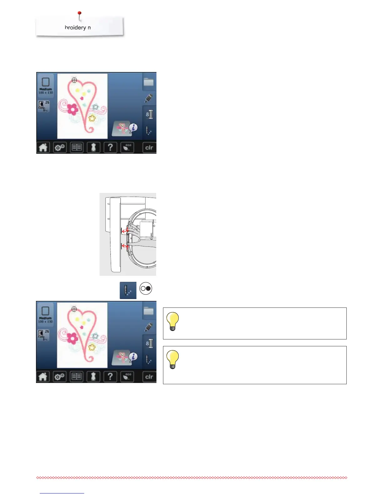 press «Embroidery menu»-button or «Start/Stop»-button on the headframe