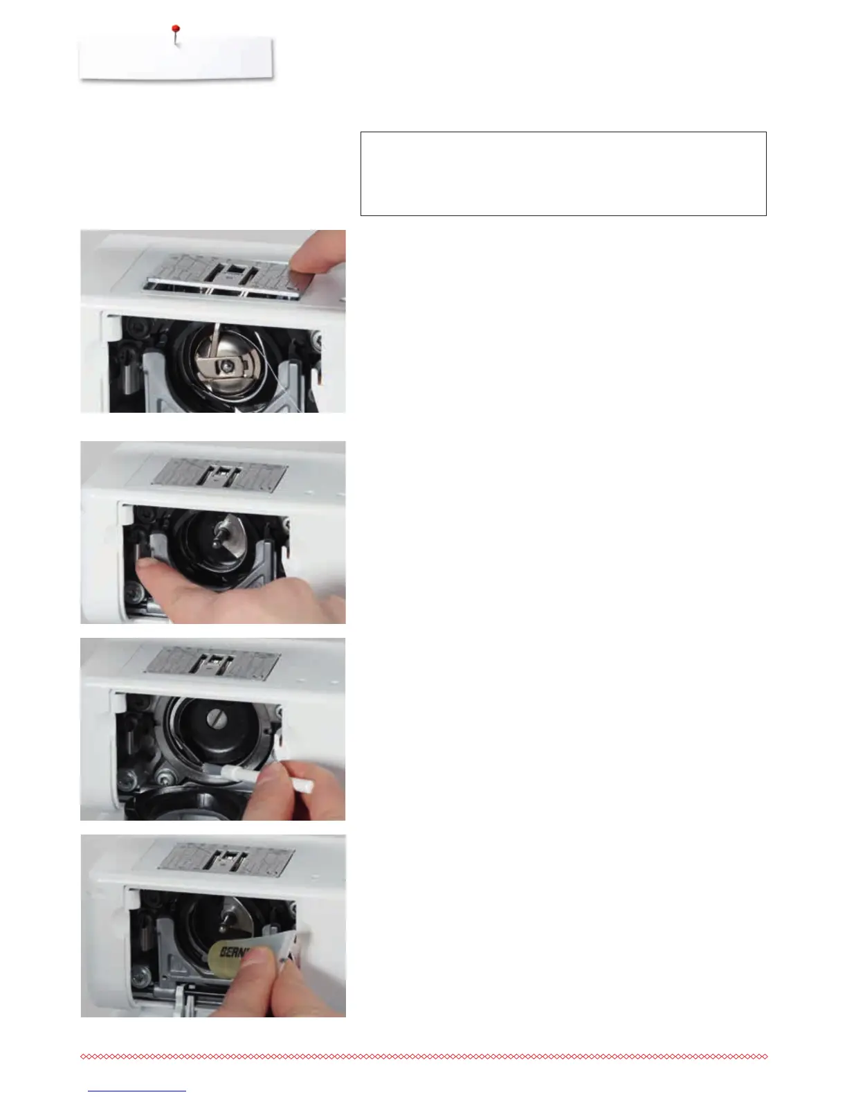 squeeze 1 or 2 drops of BERNINA oil into the hook race