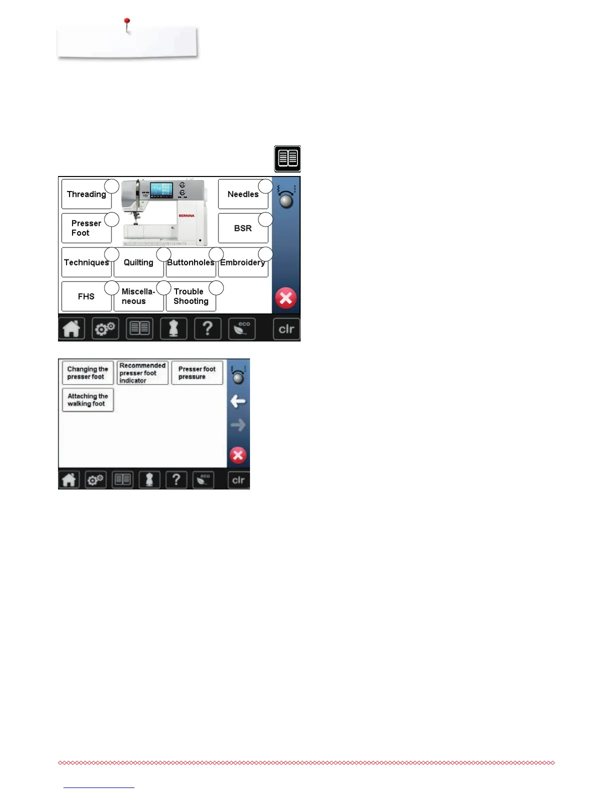 select desired topic, e.g. changing the presser foot