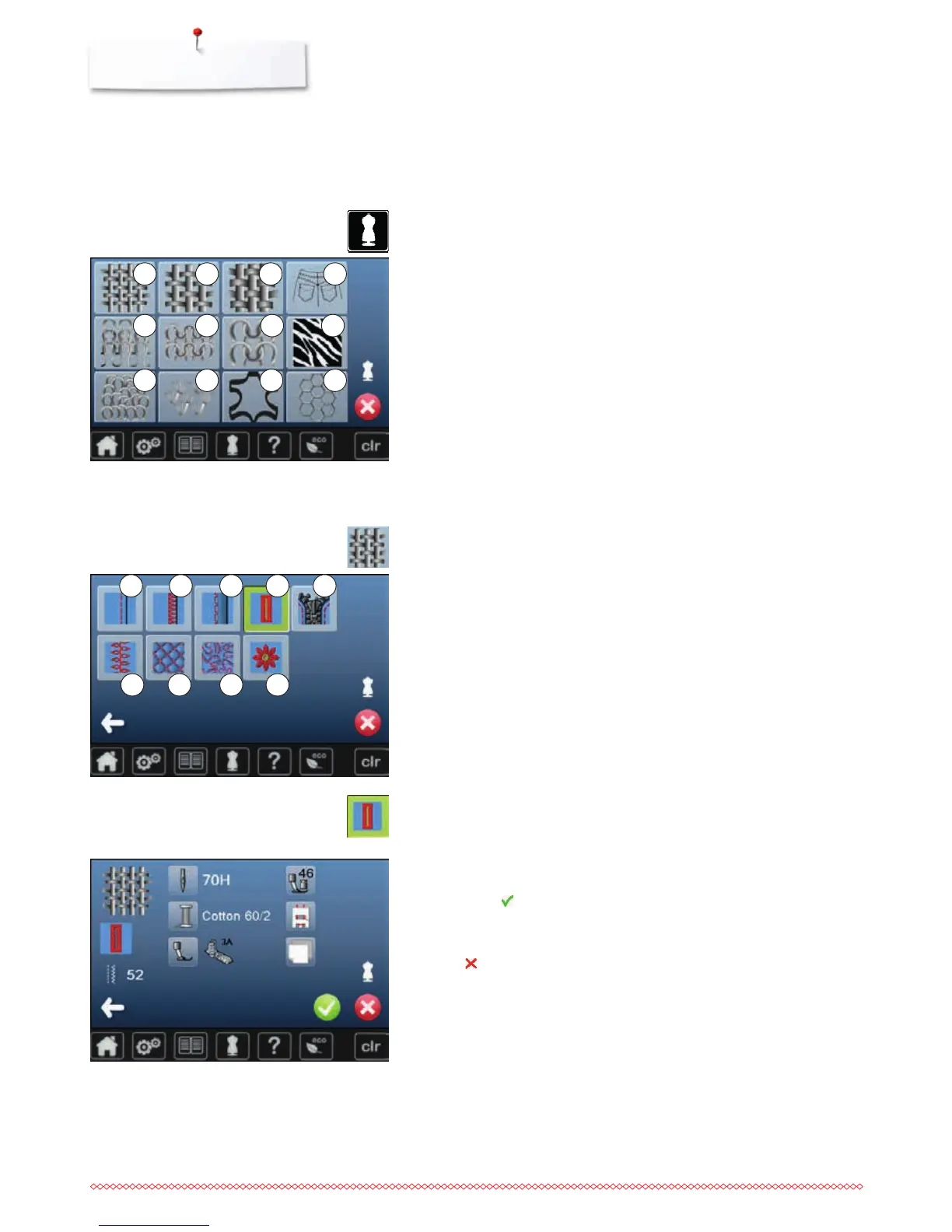 suggestions for suitable needles, presser feet etc. are displayed.