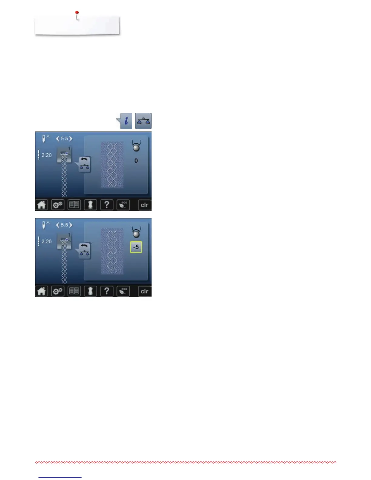 in the left part of the Display the stitch pattern is shown as it is set originally