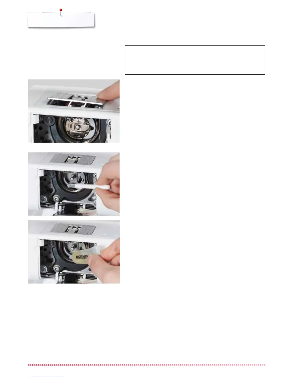 squeeze 1 or 2 drops of BERNINA oil into the hook race