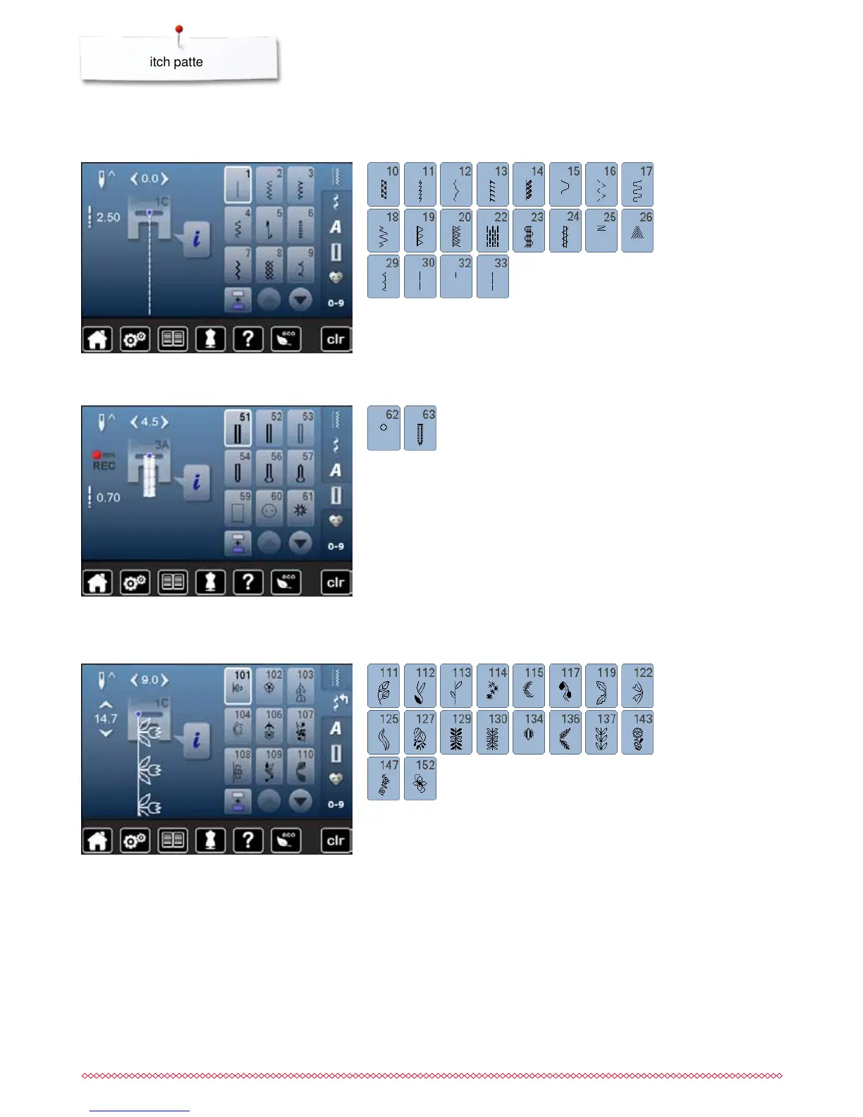 Bernina 560 - Overview Stitch Patterns; Practical Stitches; Buttonholes; Decorative Stitches