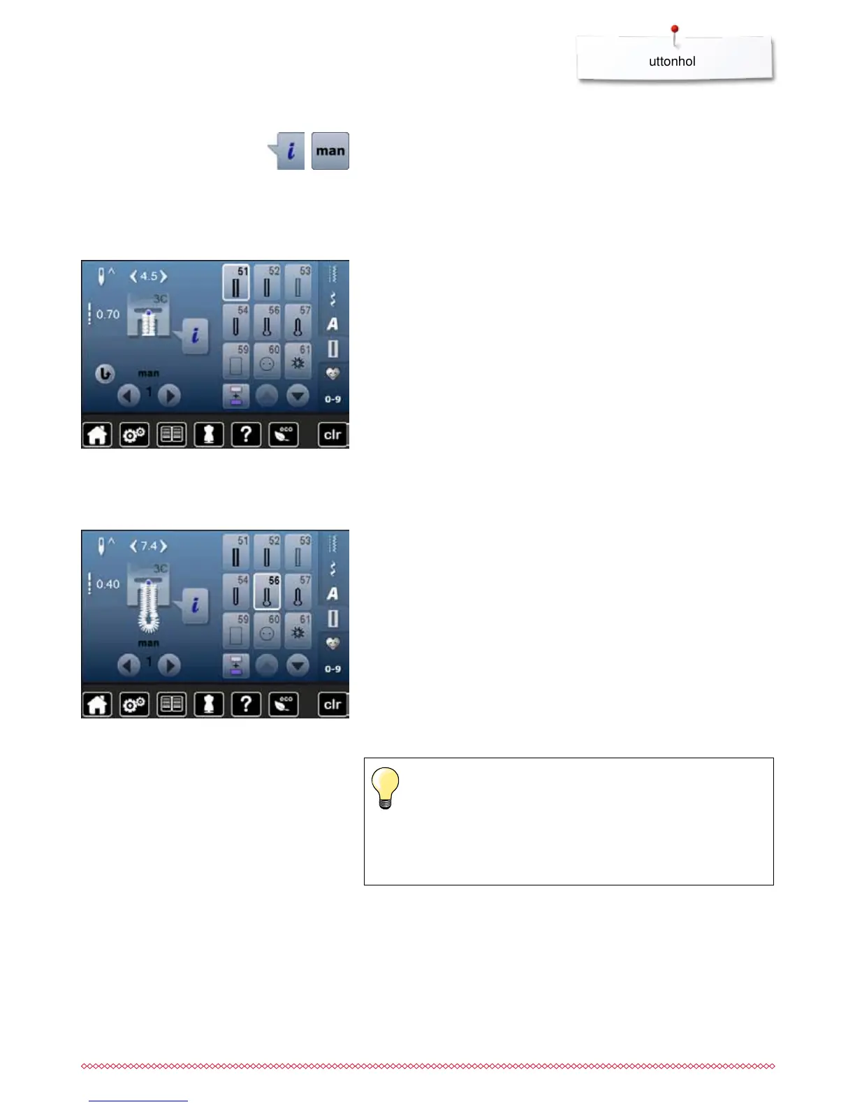 stop the sewing computer at the height of the first stitch (buttonhole begin)