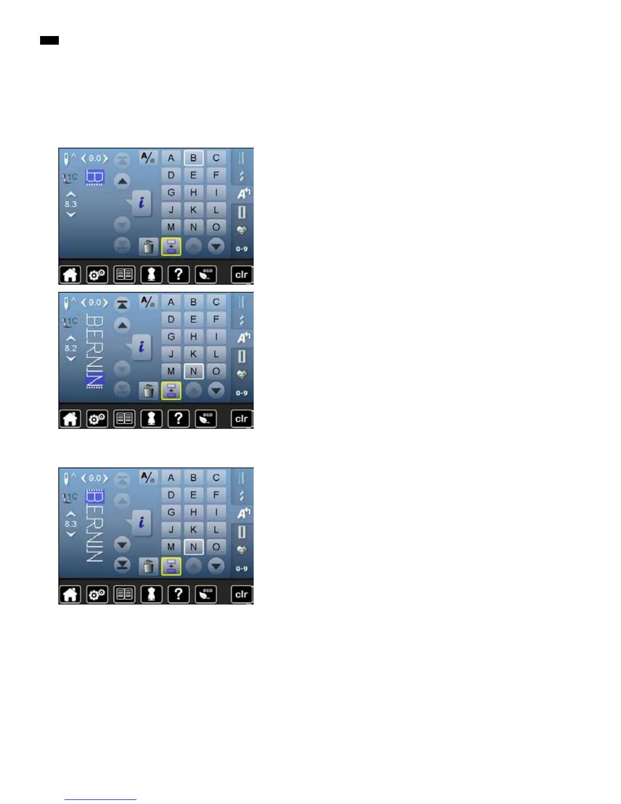 select or scroll to required letter in the Stitch altering area