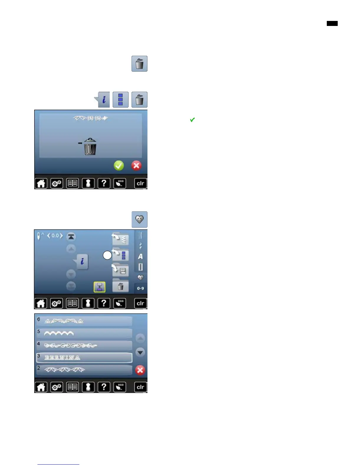 touch the «Delete»-icon as many times until the stitch altering area is empty