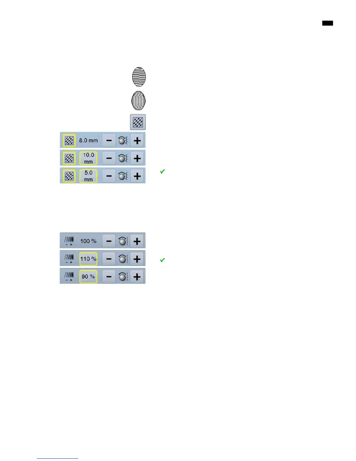 chosen stitch density is saved and «Edit»-display appears