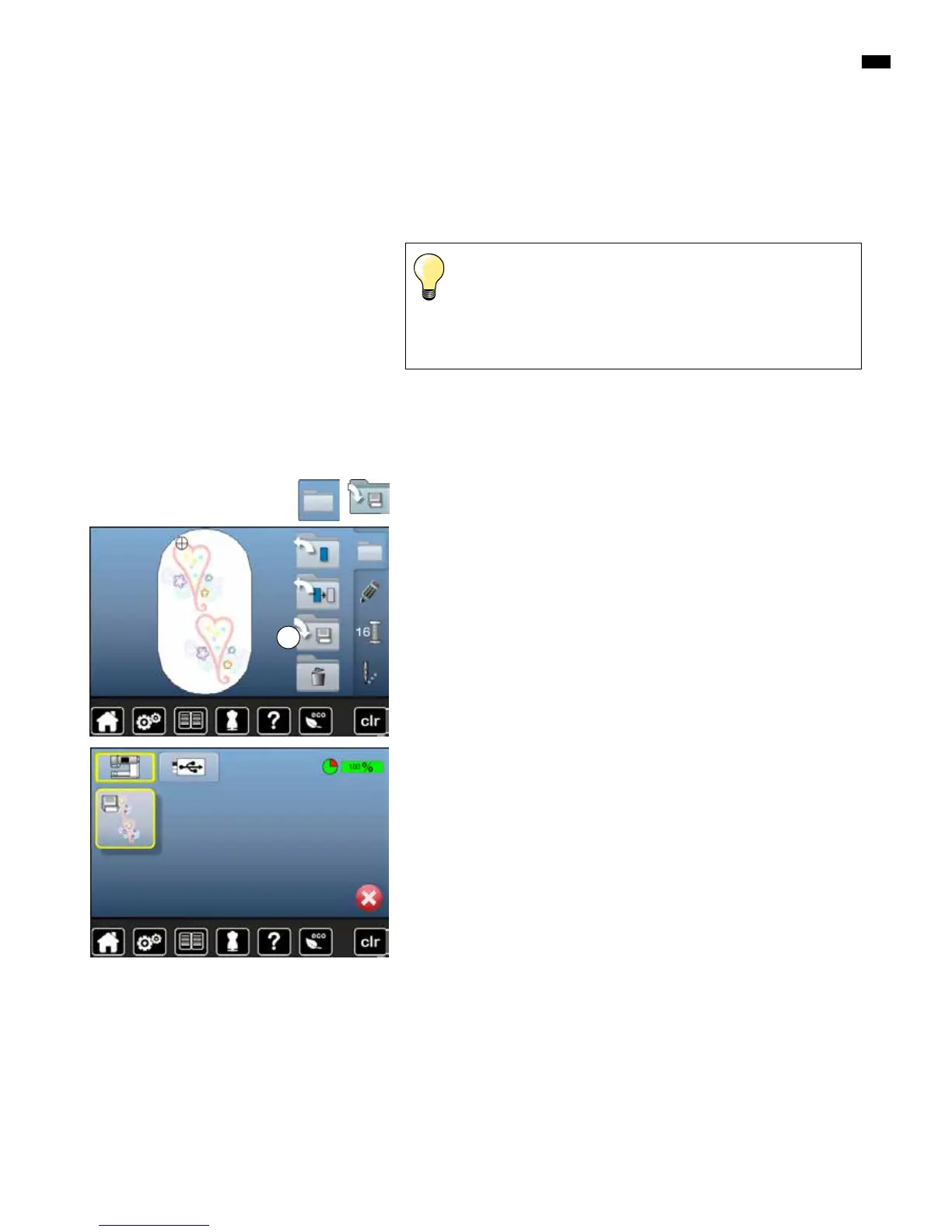 Embroidery motifs can either be saved in the embroidery computer memory or
