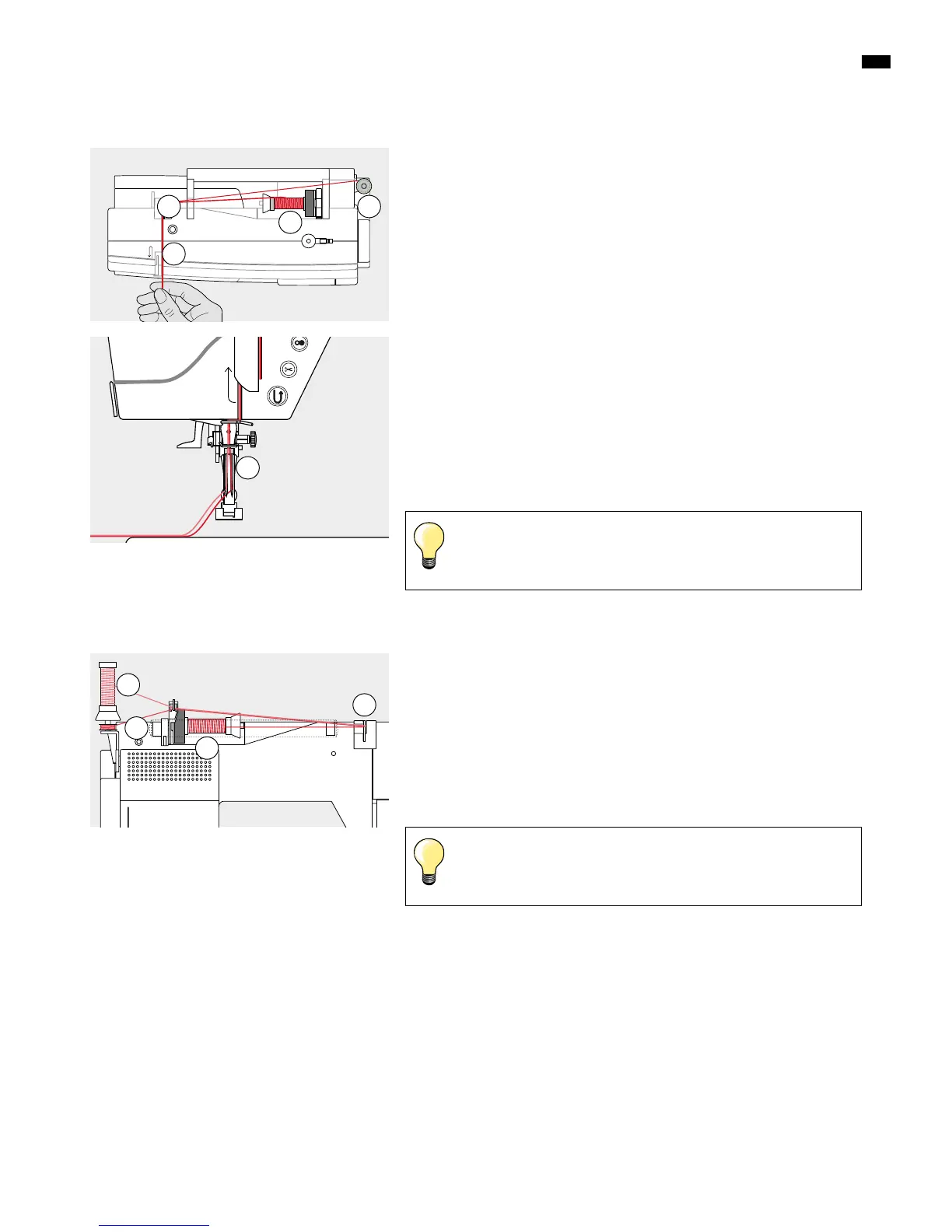 Two thread spools and one full bobbin are needed.