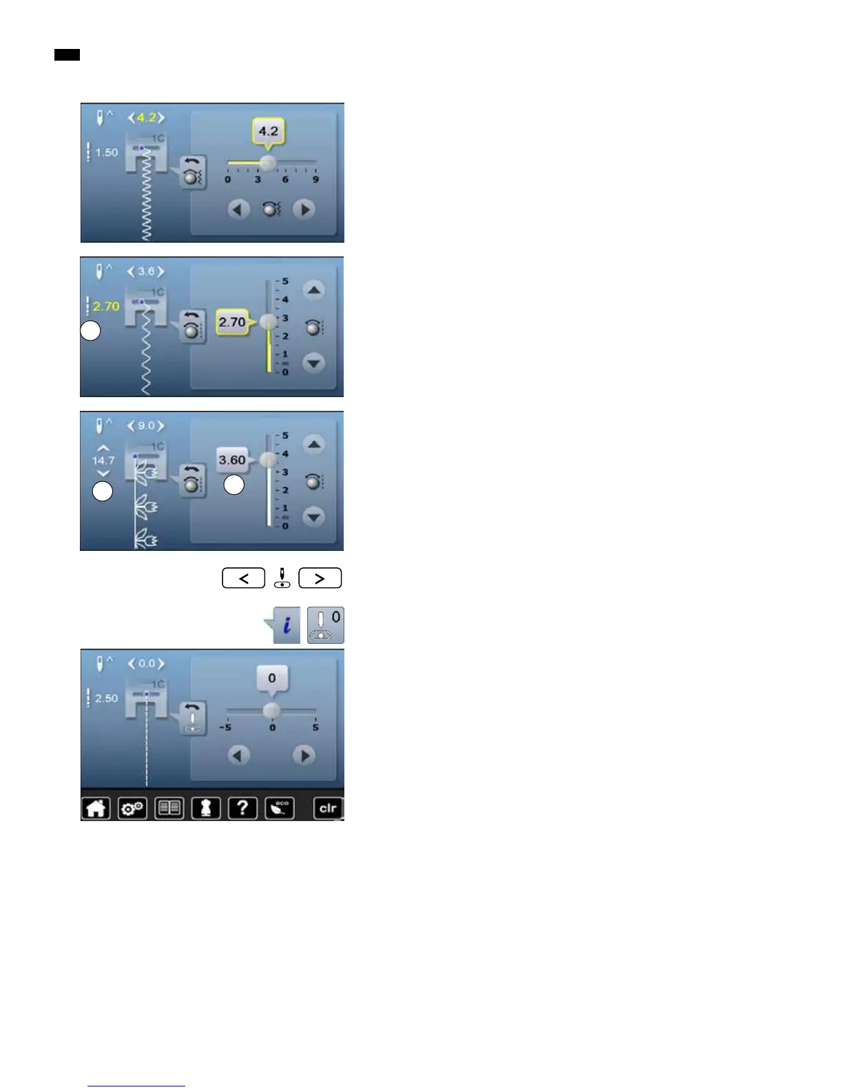 touch stitch width or stitch length Display