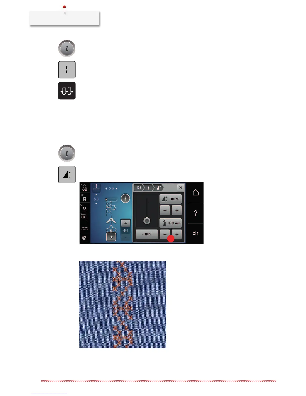 > Touch the icon «Edit pattern length/stitch density».