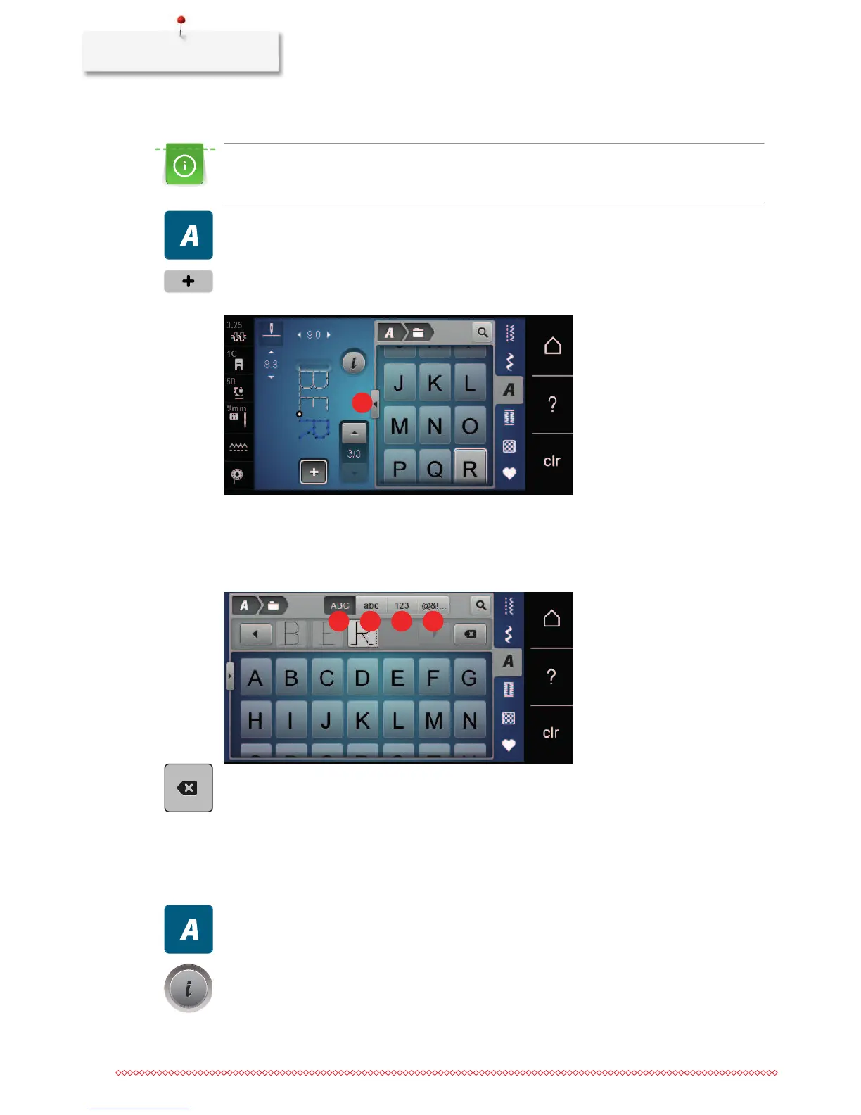> Touch the icon «Display alphabets» (1) to open an extended enter mode.