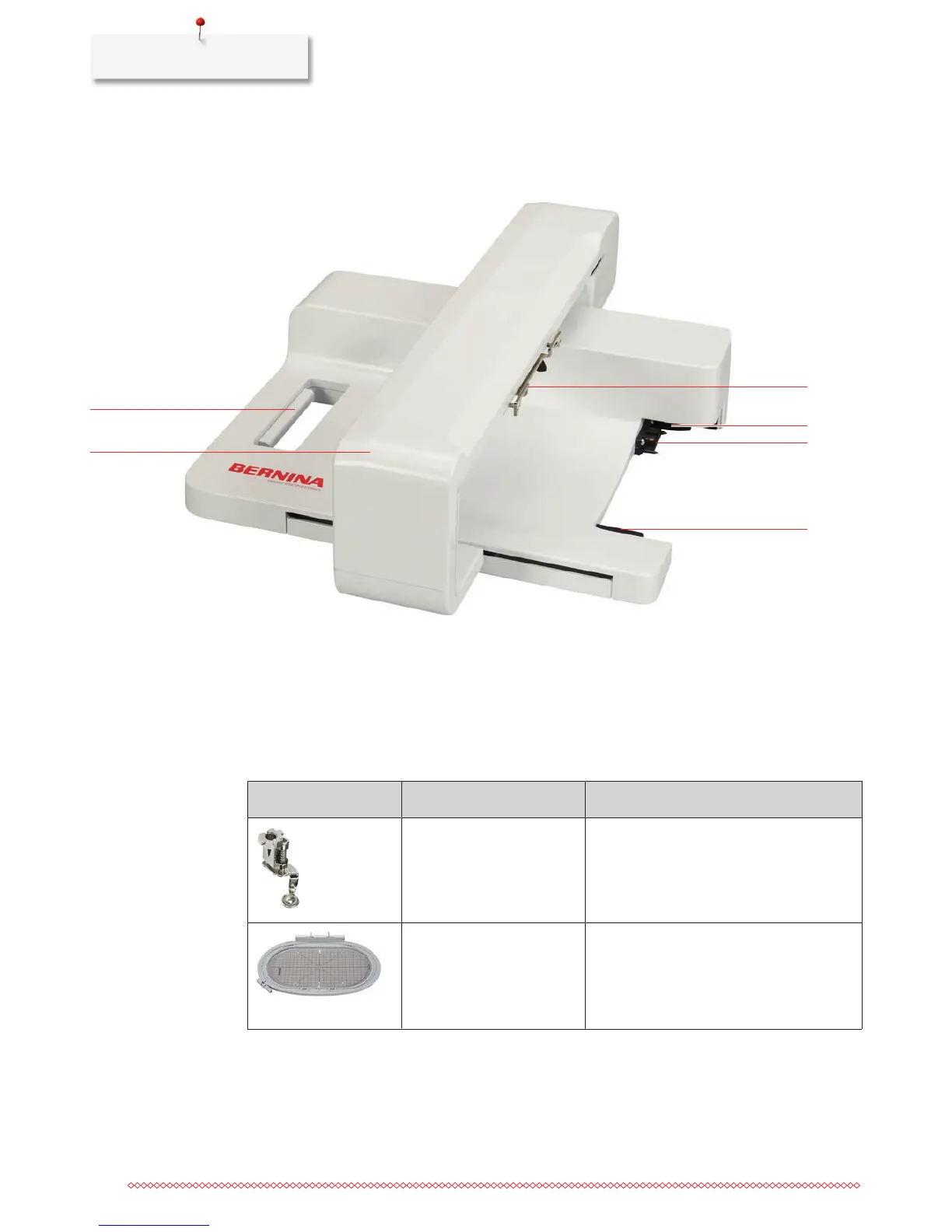 12.2 Supplied accessories Embroidery module