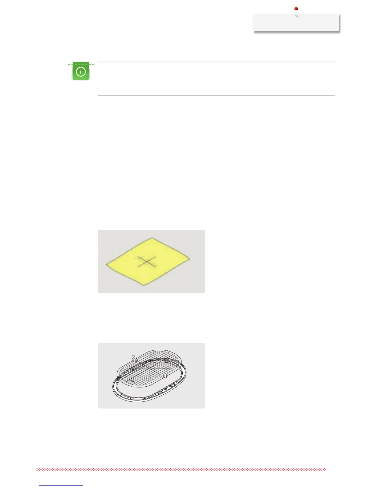 hoop. The area to be embroidered is marked in 1 cm (0.39inch) squares. The center and corner points are