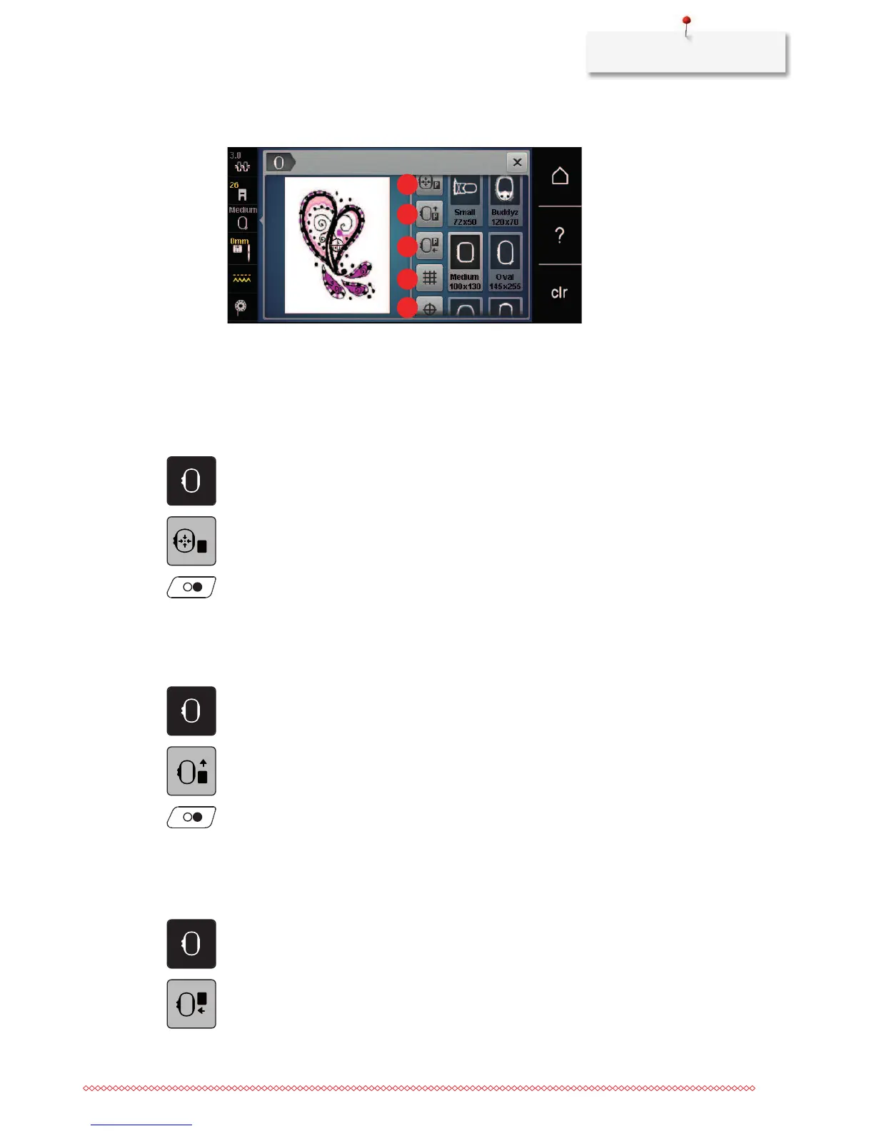 > Touch the icon «Embroidery hoop display/Embroidery hoop selection».