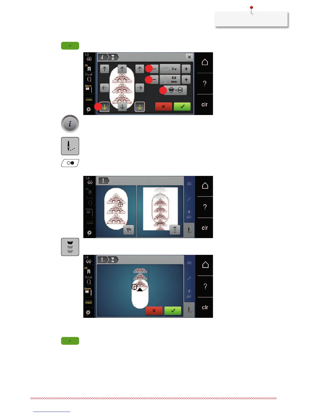 > Via the arrow icons, determine on which side of the embroidered part the next reference point shall be