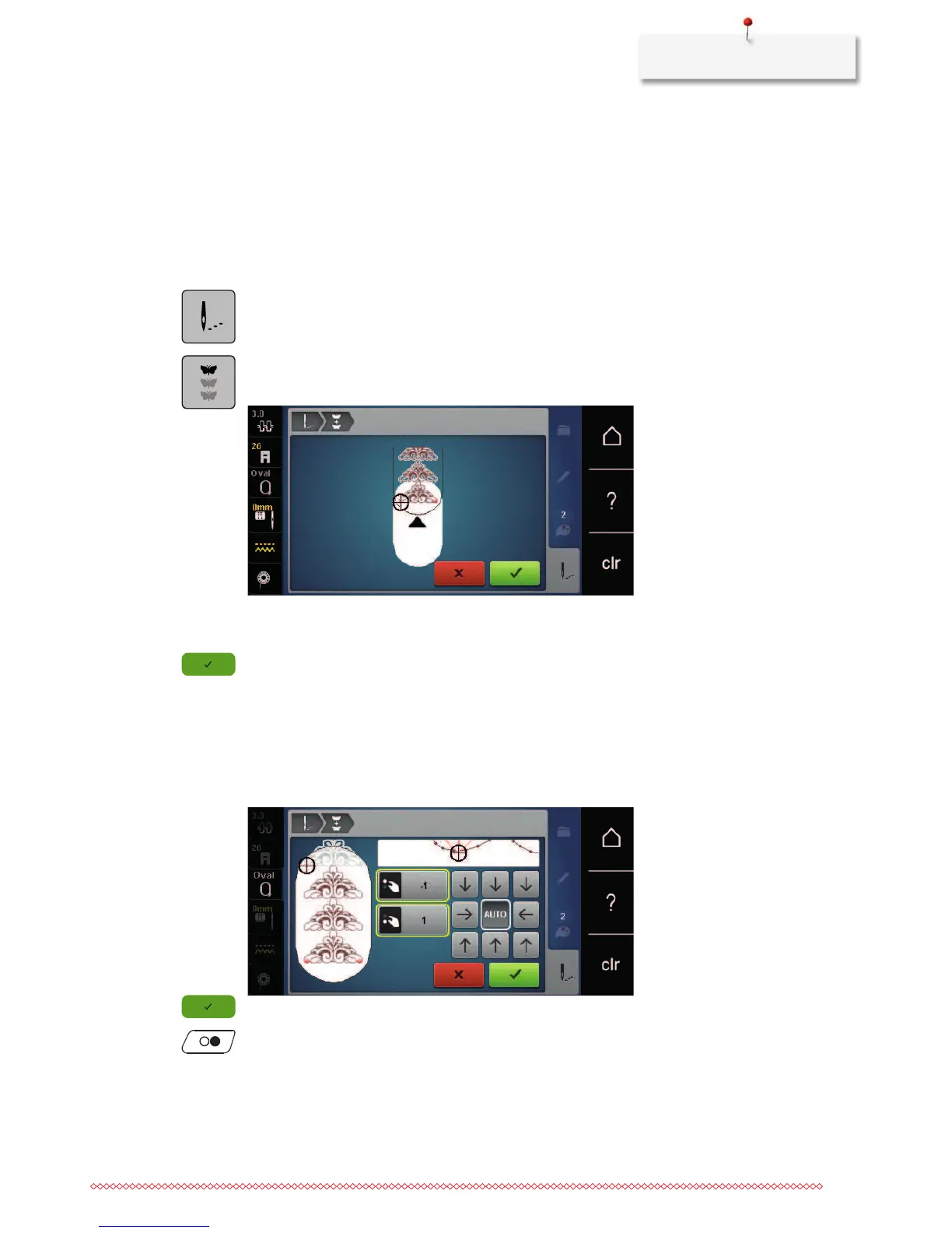 > Via the arrow icons, determine on which side of the embroidered part the next reference point shall be