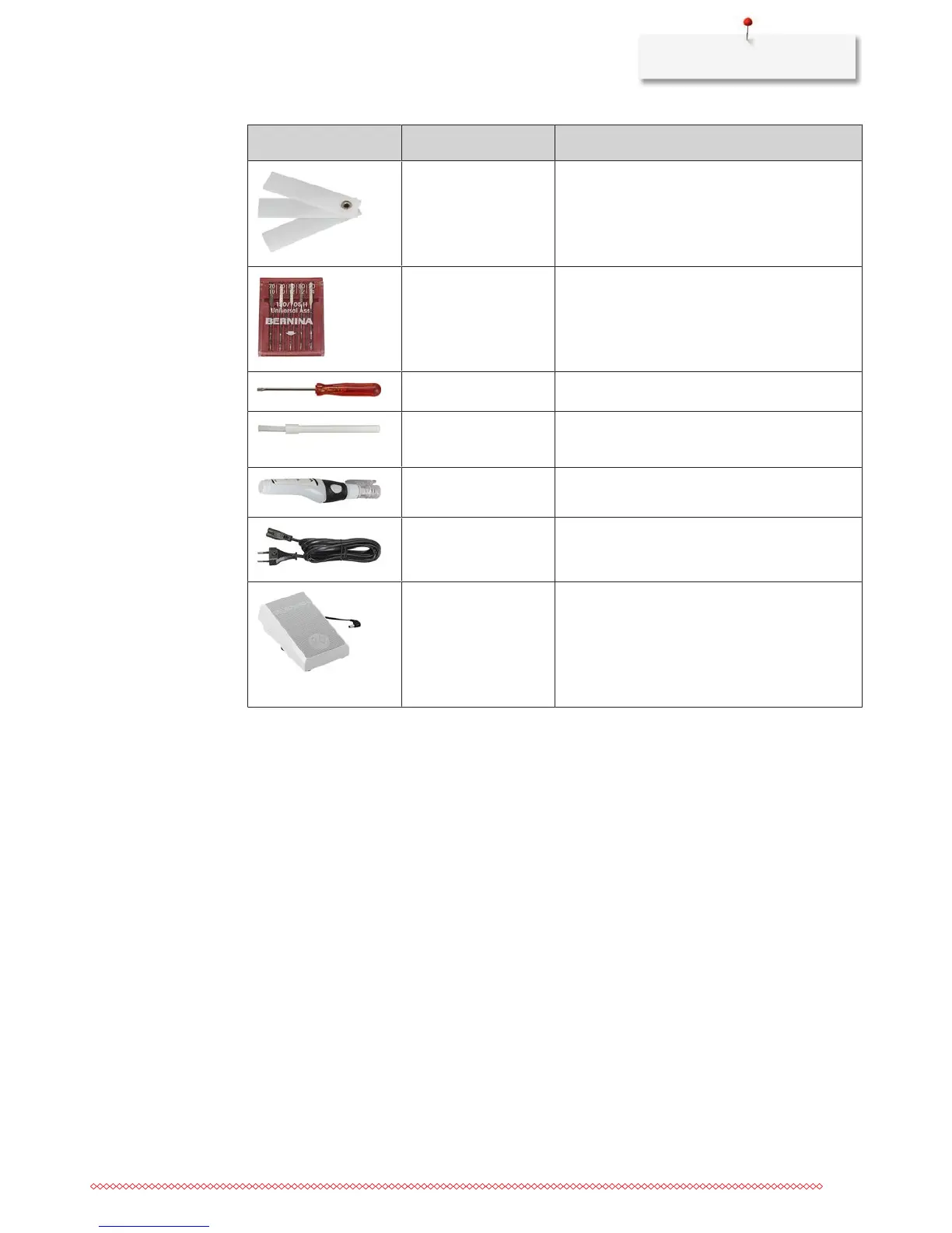 Brush The brush is used to clean the feed dog and the