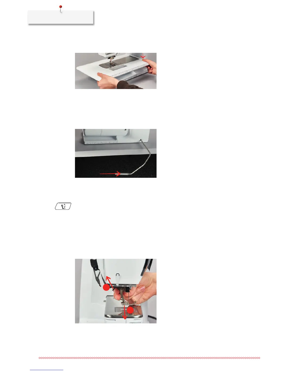 > Push the button «Presser foot up/down» to raise the presser foot.