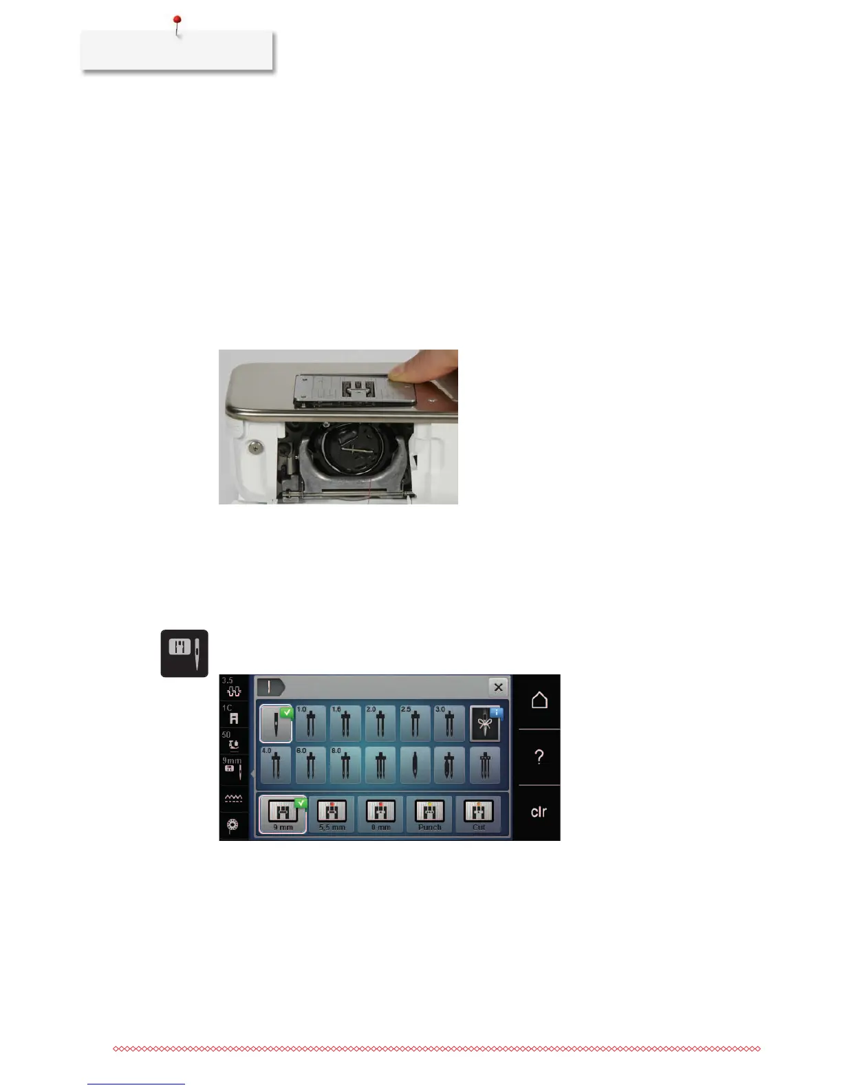 – If the selected stitch plate is suitable in combination with the needle, sewing can be started.