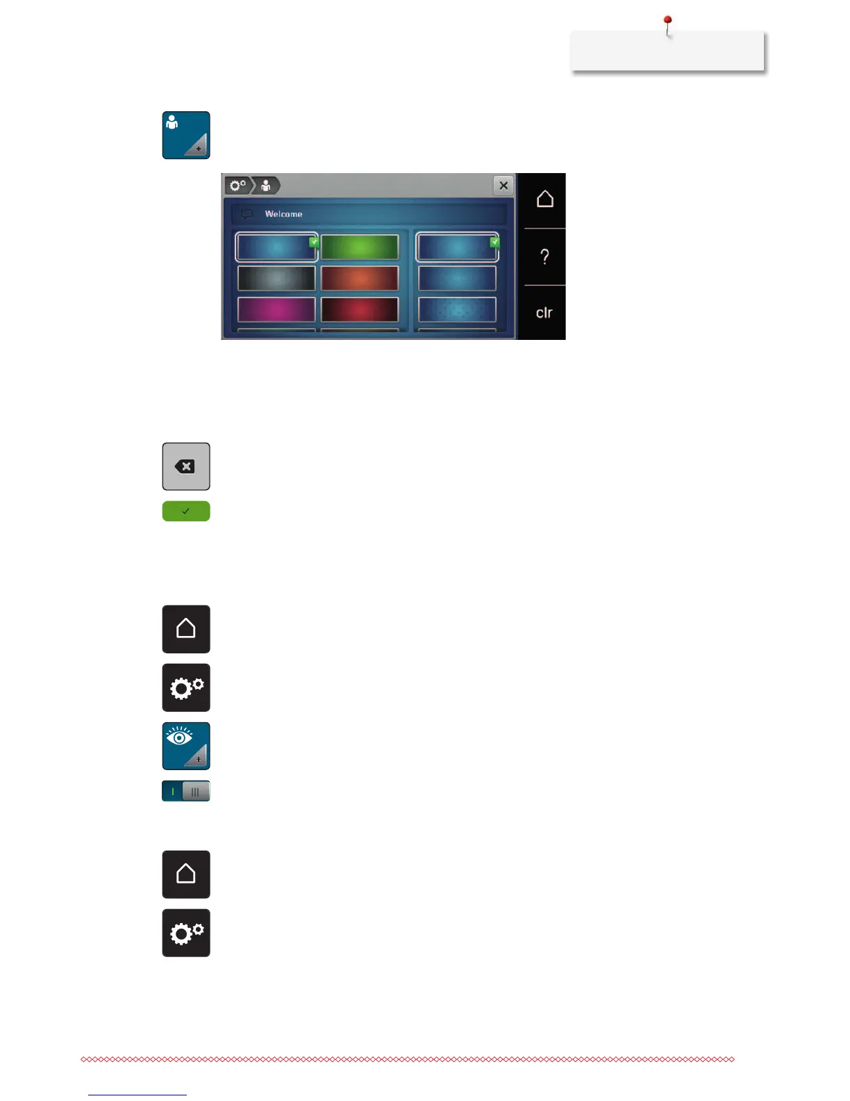 > Touch the switch in the upper portion of the display to deactivate the upper thread indicator.