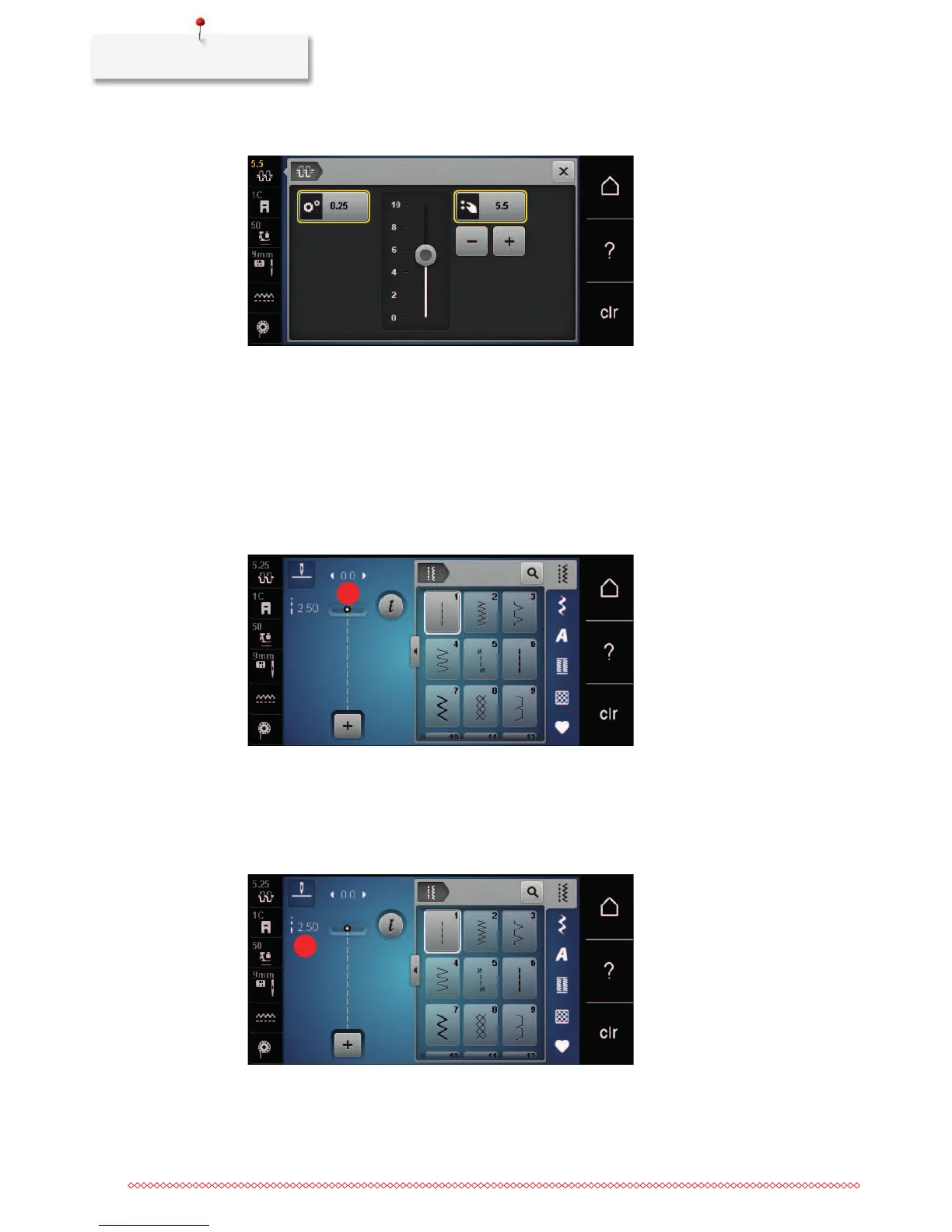 > Move the slide using the touchscreen pen/finger to increase or reduce the upper thread tension.