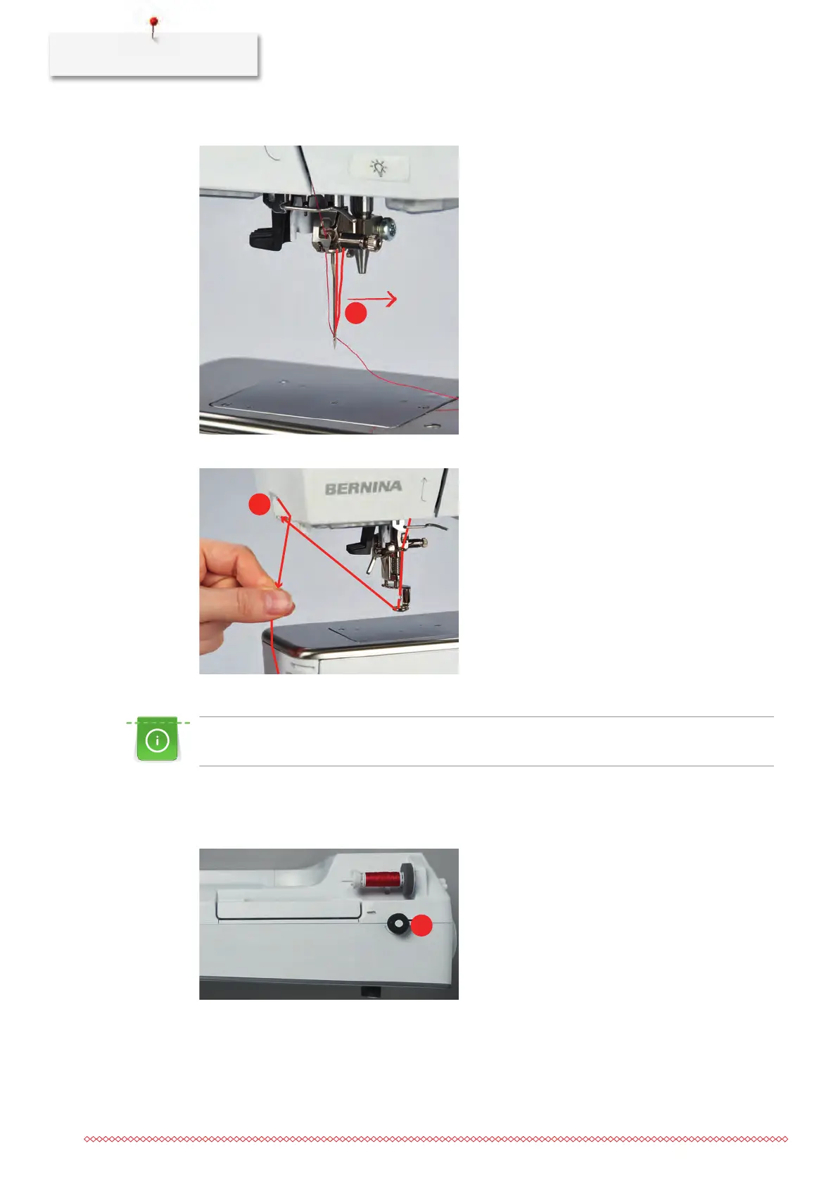 > Pull the thread beneath the presser foot from back to front over the thread cutter (15) and cut.