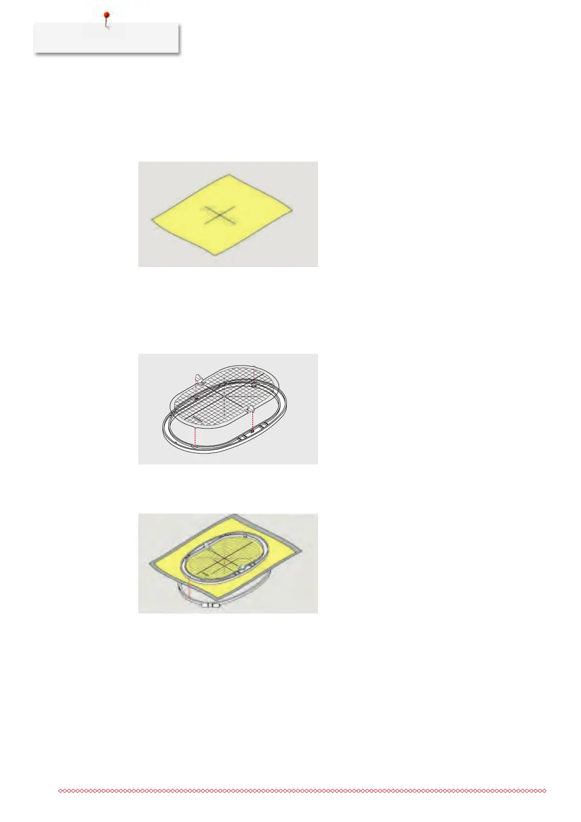 > Place the material and the inner hoop on the outer hoop so that the arrows of both hoops match.