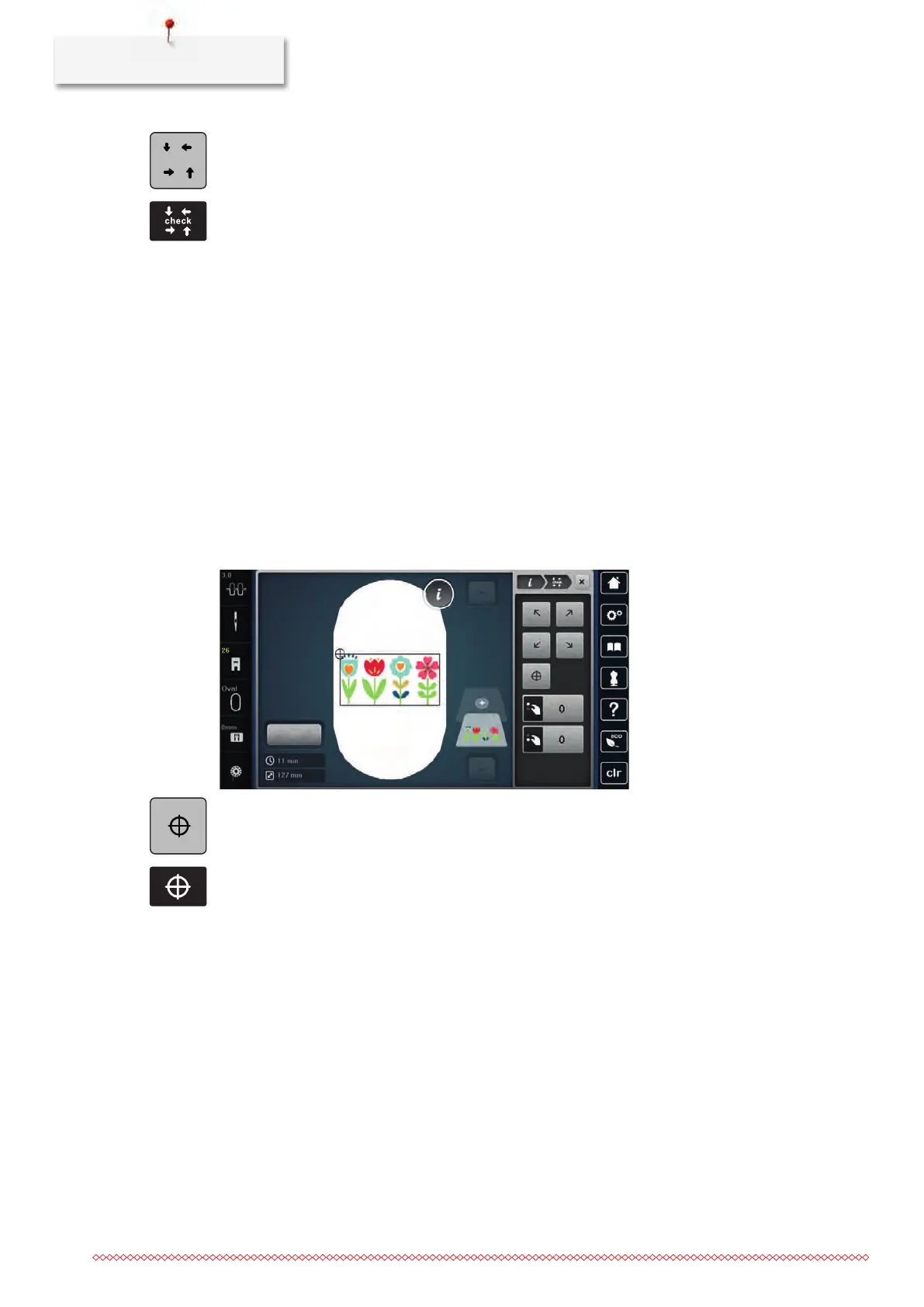 display. If the embroidery motif hasn't been positioned correctly yet, the position can be altered via