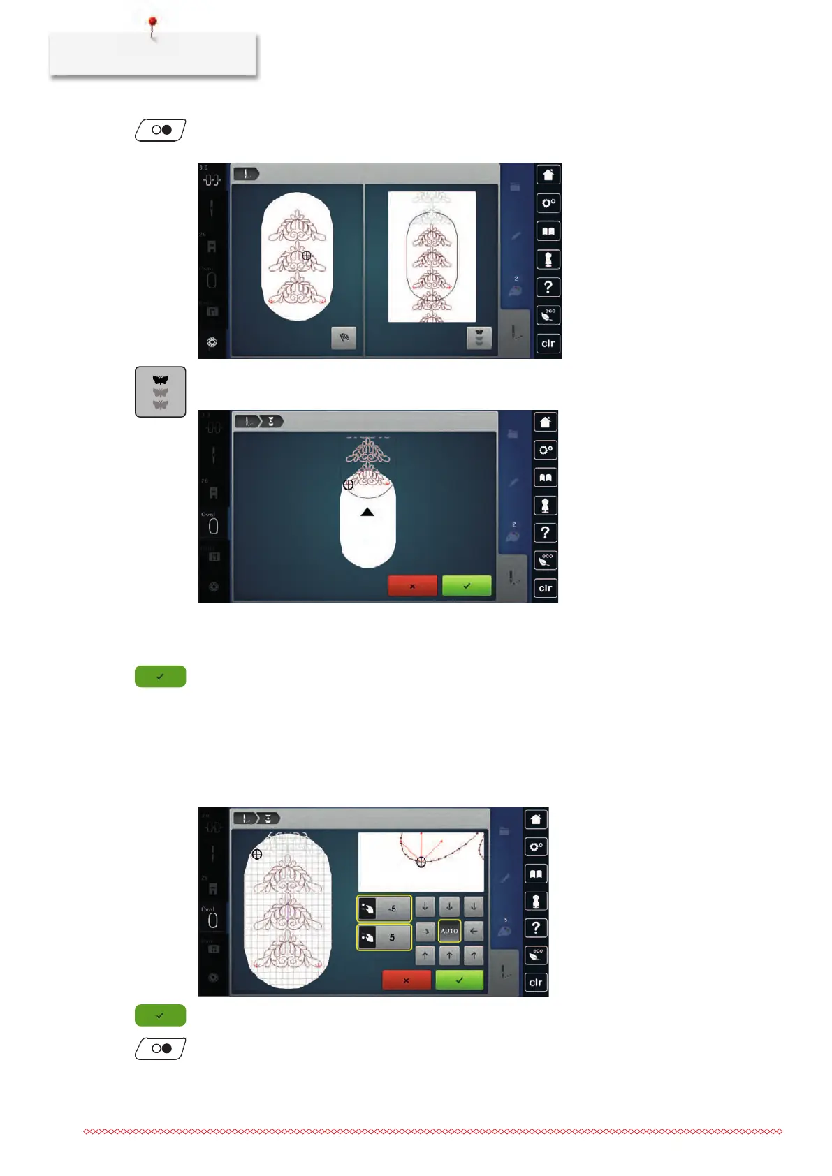 > Via the arrow icons, determine on which side of the embroidered part the next reference point shall be