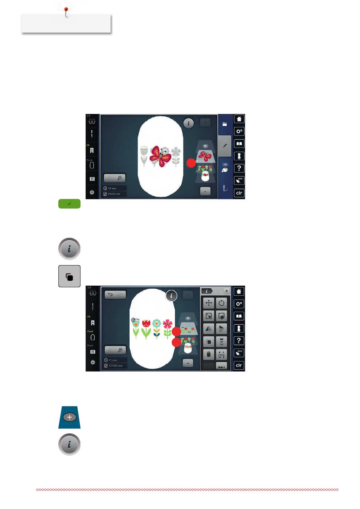 > In the section of the embroidery motif level (1) touch the desired embroidery motif with the finger, keep