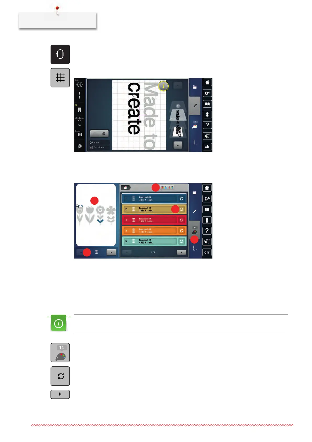 > Touch the icon «Embroidery hoop display/Embroidery hoop selection».