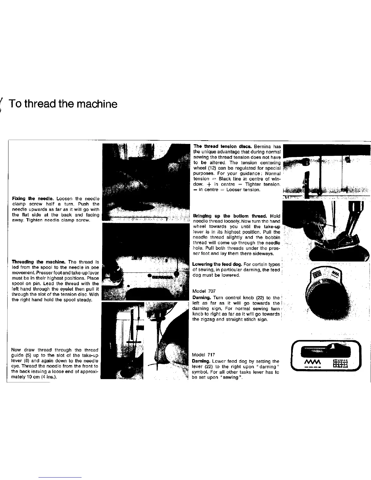 Bernina 707 - Machine Threading Guide; Fixing the Needle Correctly; General Threading Procedure; Bringing Up Bottom Thread