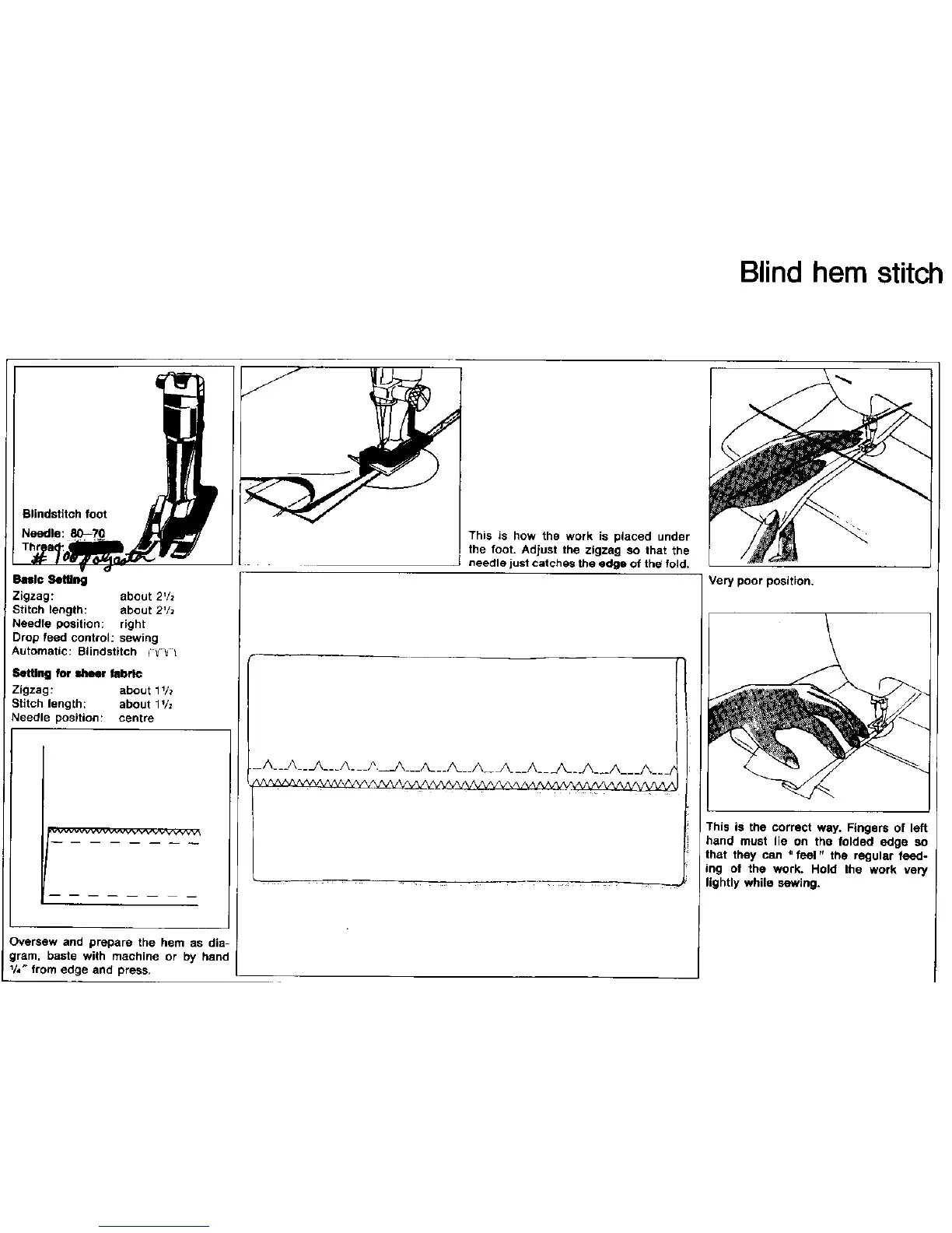 Bernina 707 - Blind Hem Stitch Guide; Blind Hem Stitch Settings