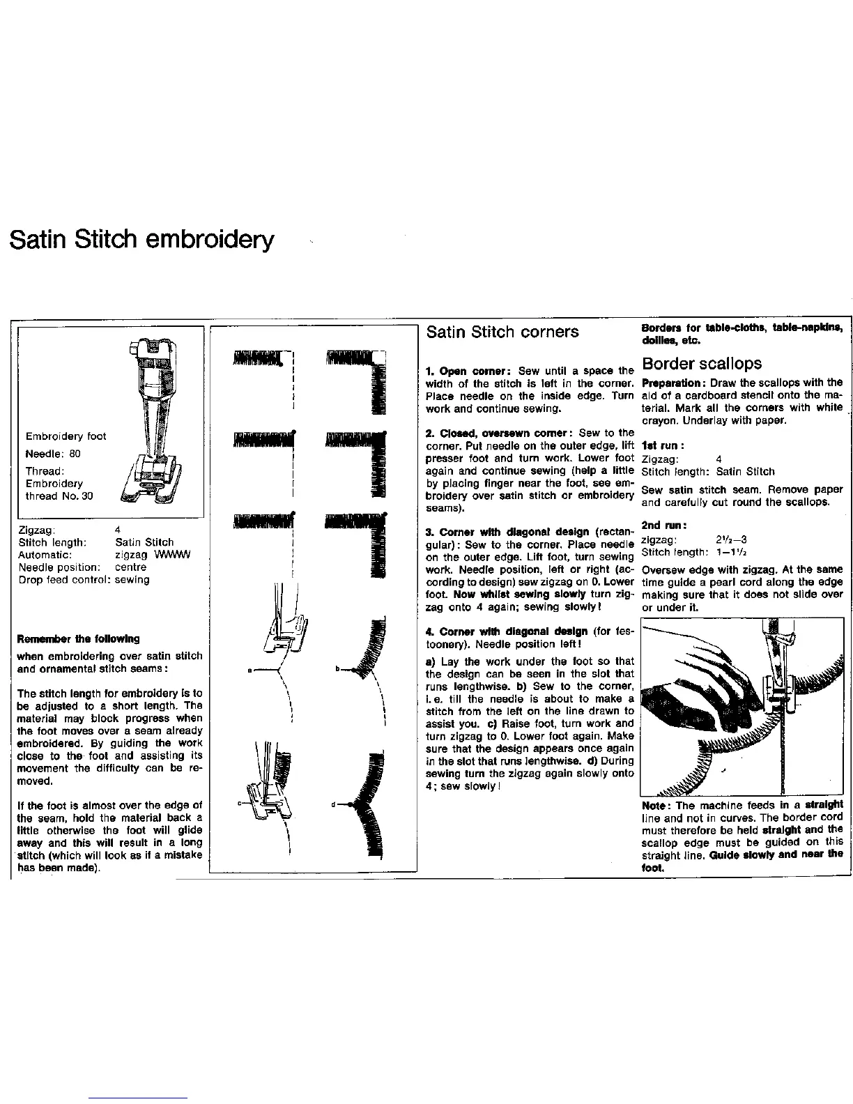 Bernina 707 - Satin Stitch Embroidery; Satin Stitch Embroidery Setup; Satin Stitch Corner Techniques; Borders and Scallops