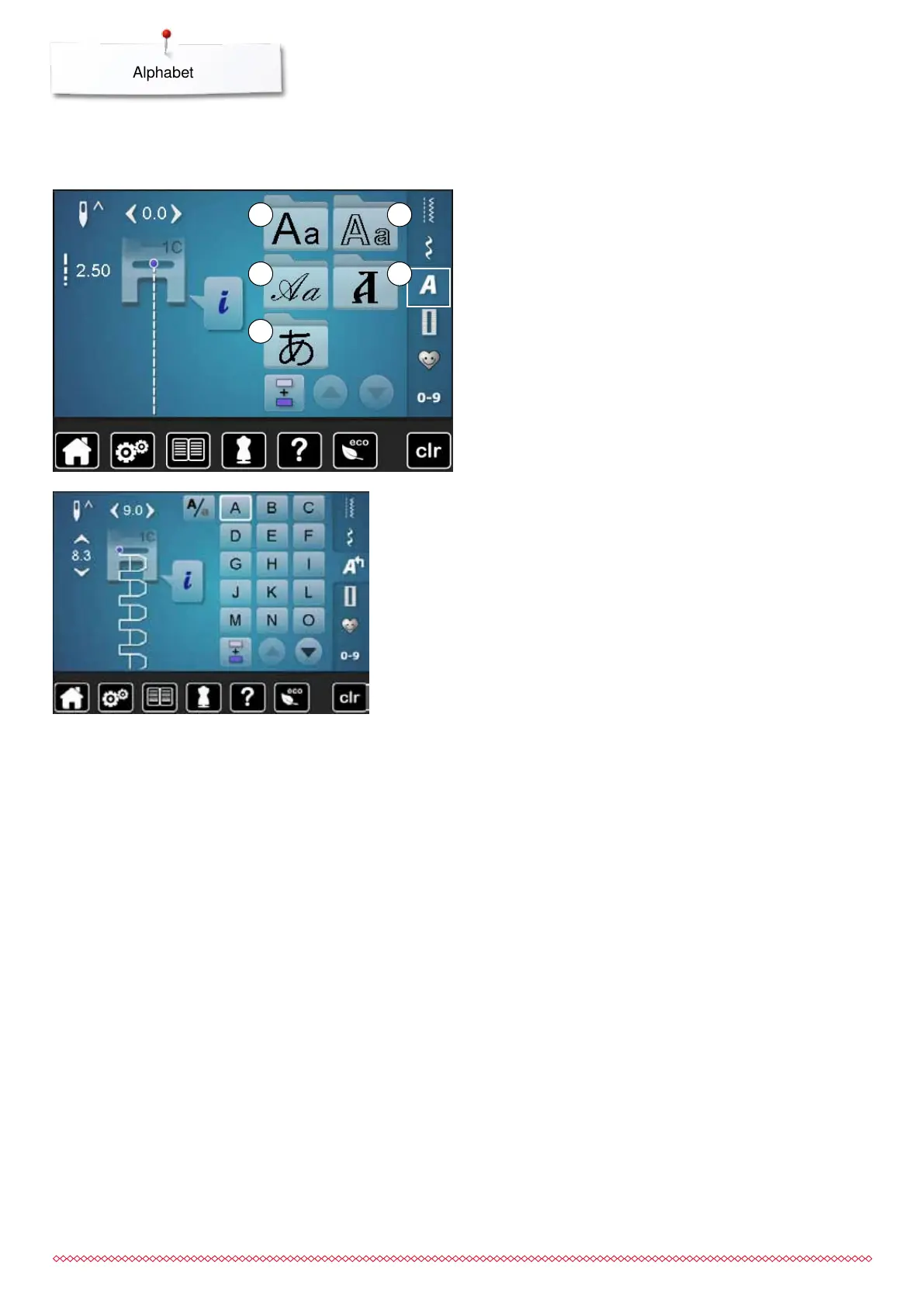 Block-, Double Block-, Script- and Cyrillic can also be sewn in