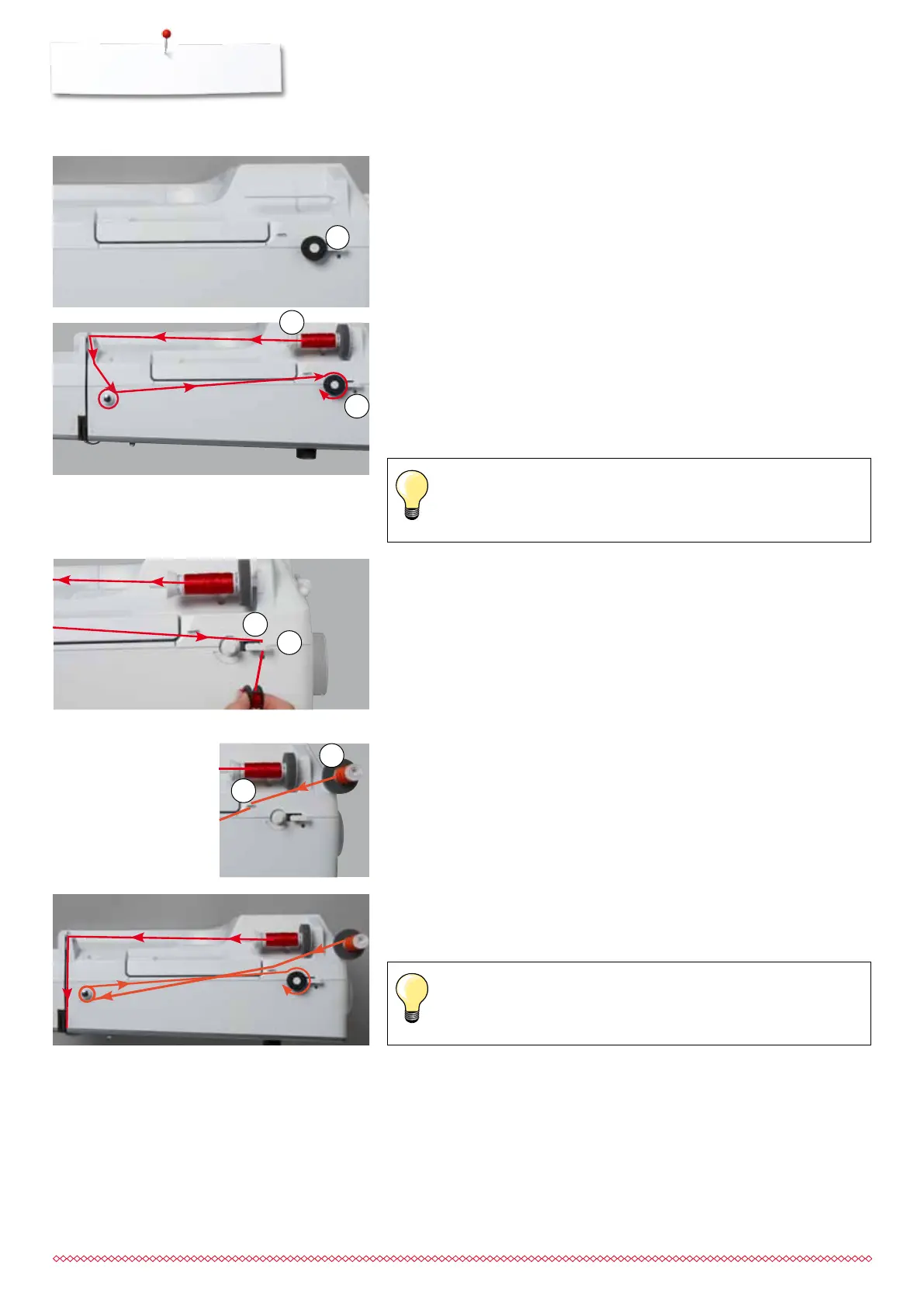 remove bobbin and pull the thread over thread cutter 5 to cut it