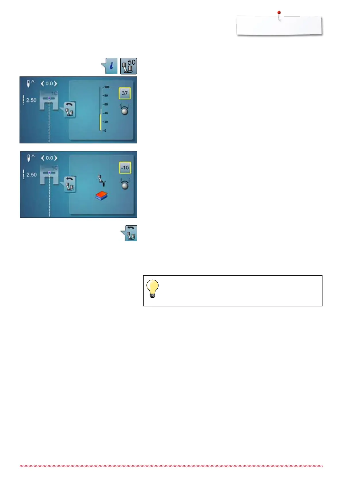 alterations of the presser foot pressure is displayed in the scale (yellow)